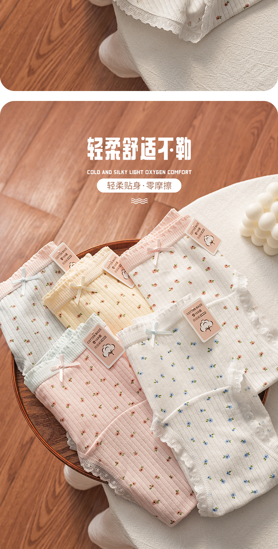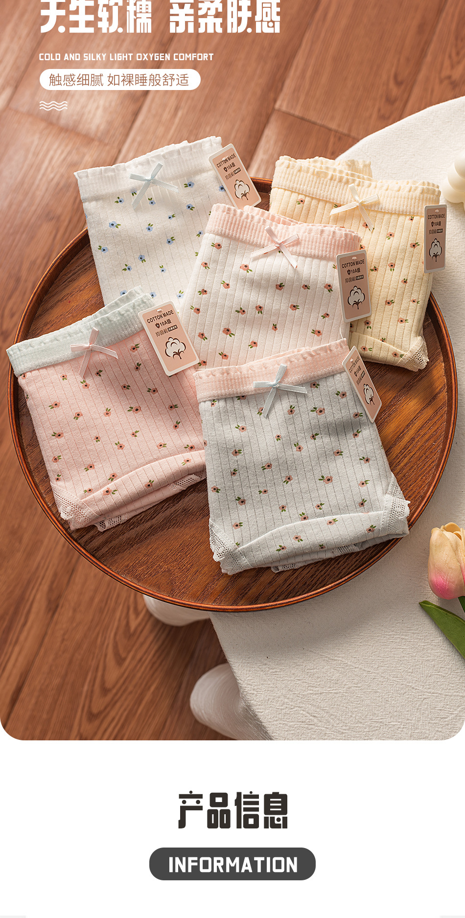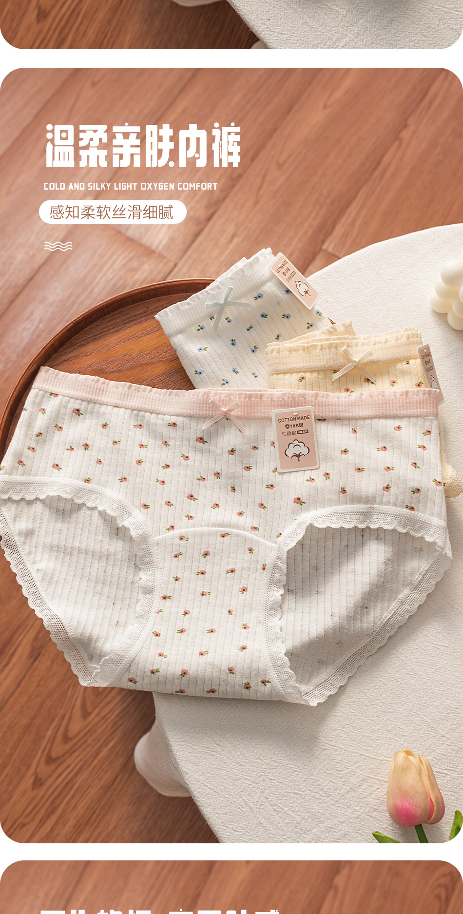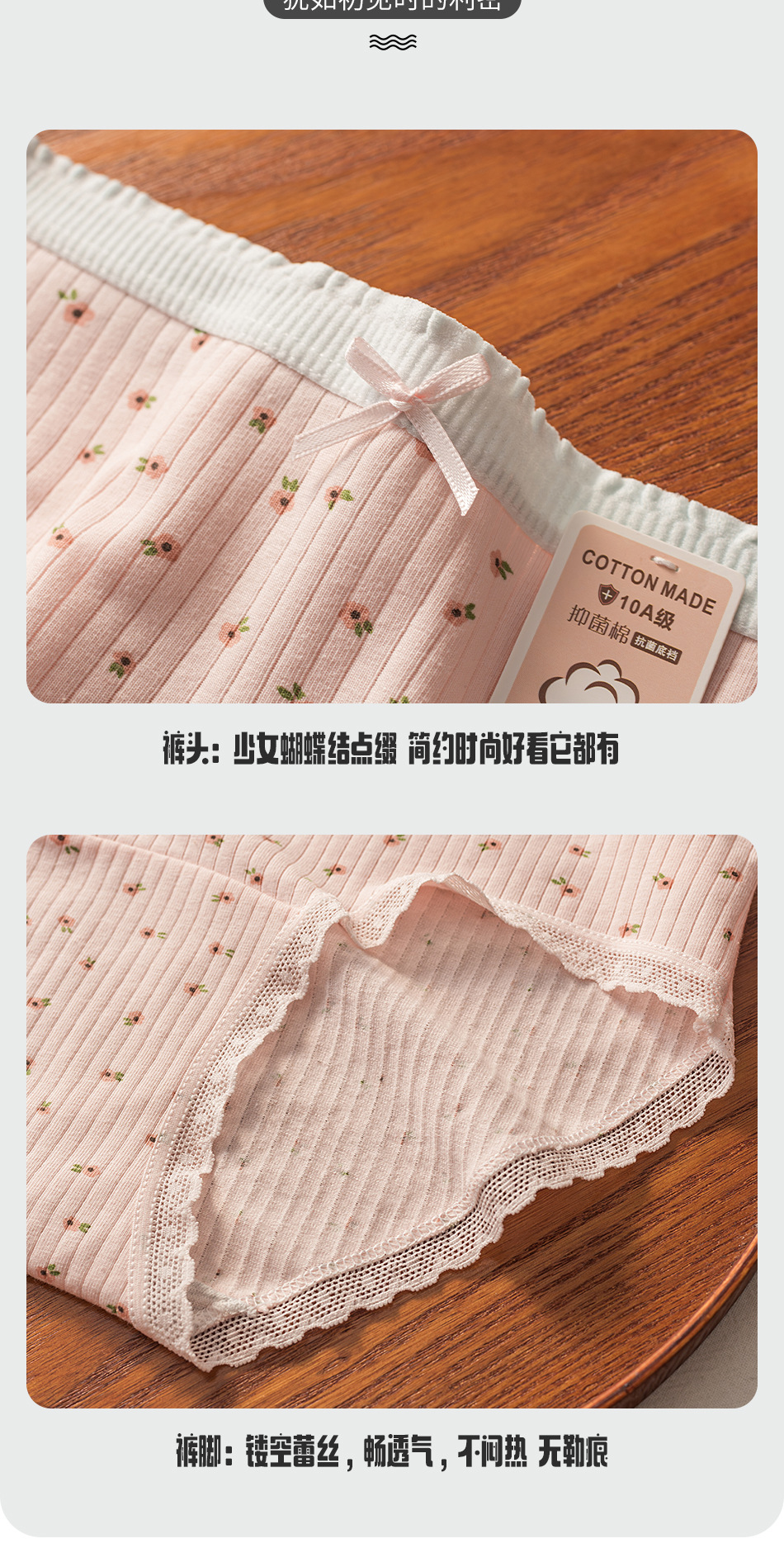 秋冬新品抗菌全棉加長襠碎花純棉女士內褲透氣包臀可愛女生三角褲