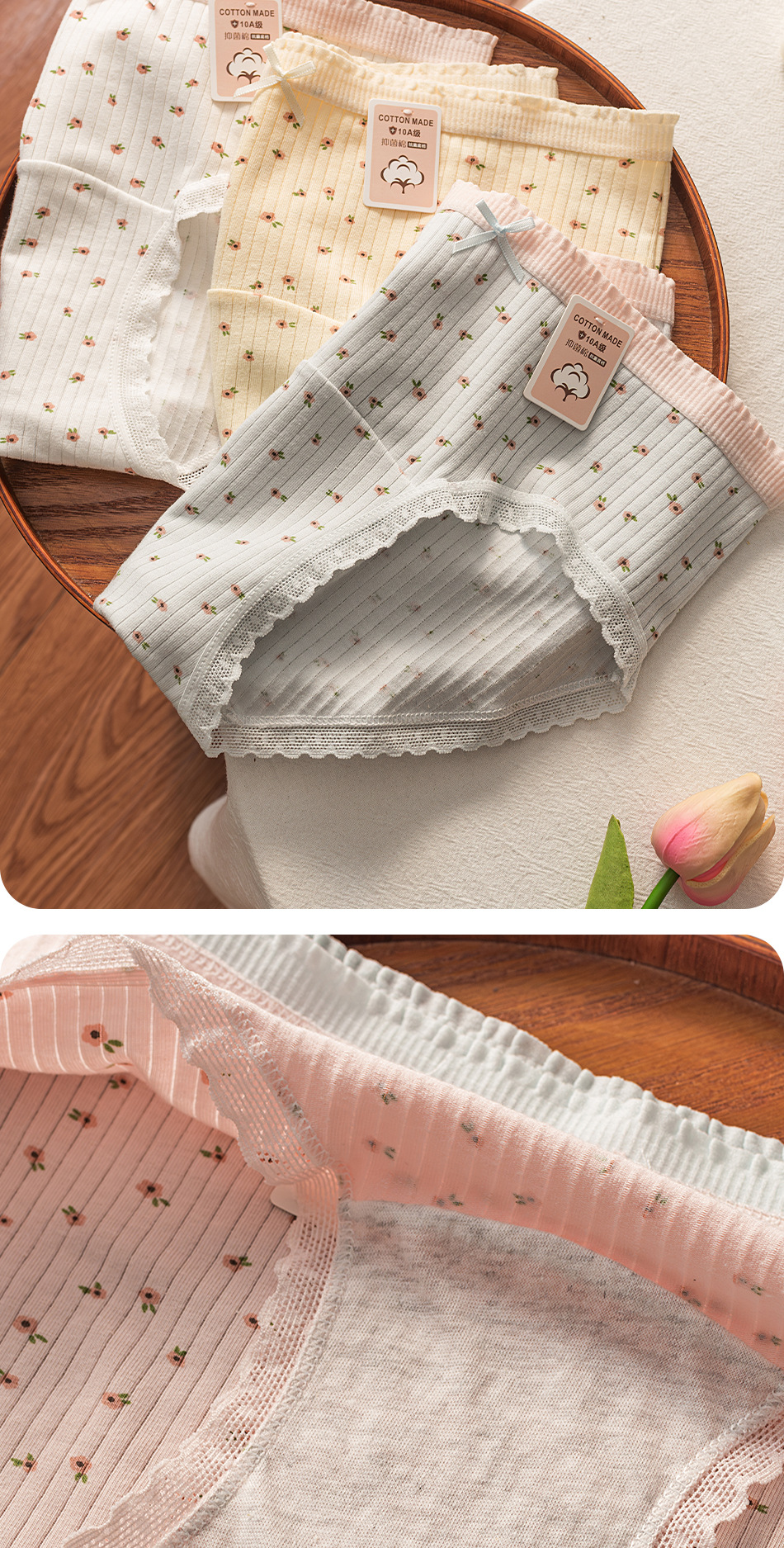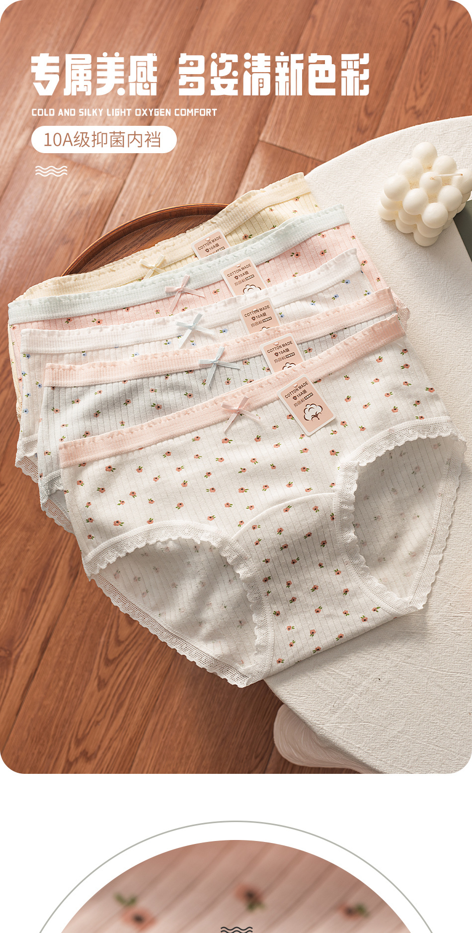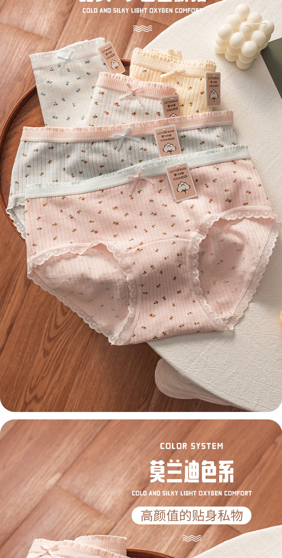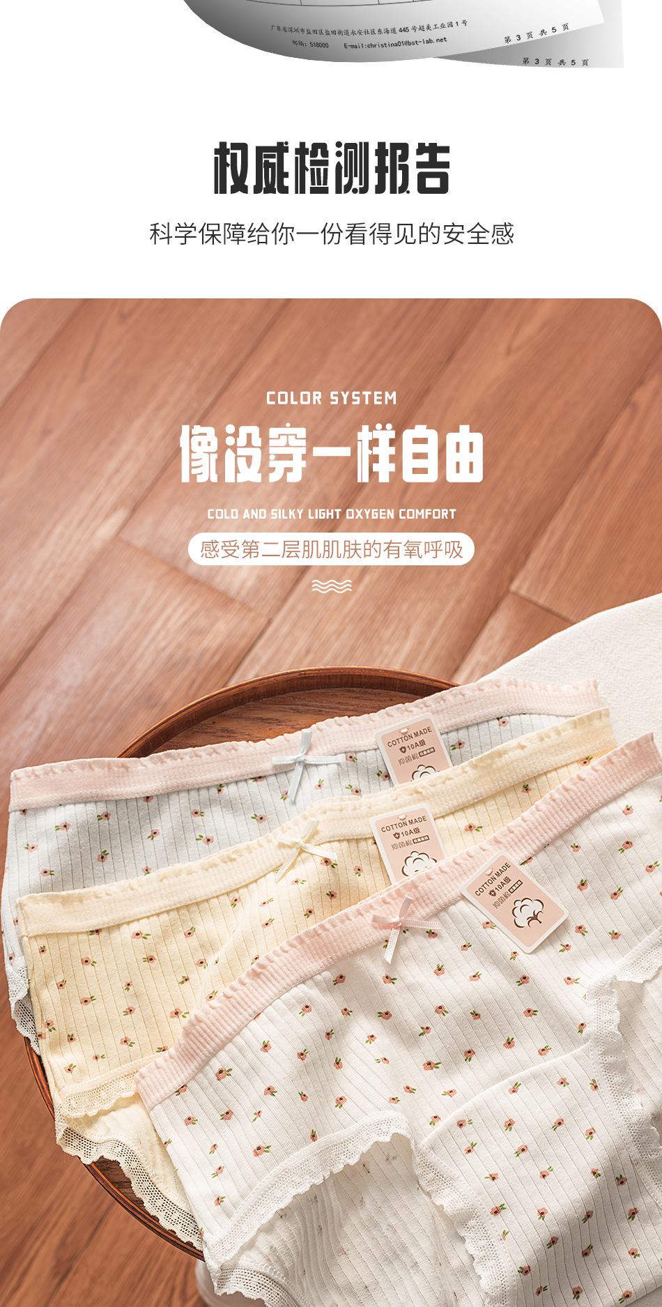 秋冬新品抗菌全棉加長襠碎花純棉女士內褲透氣包臀可愛女生三角褲