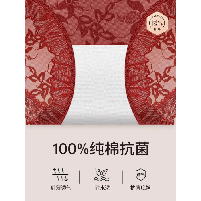 高腰蕾絲收腹提臀內褲女士純棉襠2025新款性感冰絲無痕女生三角褲