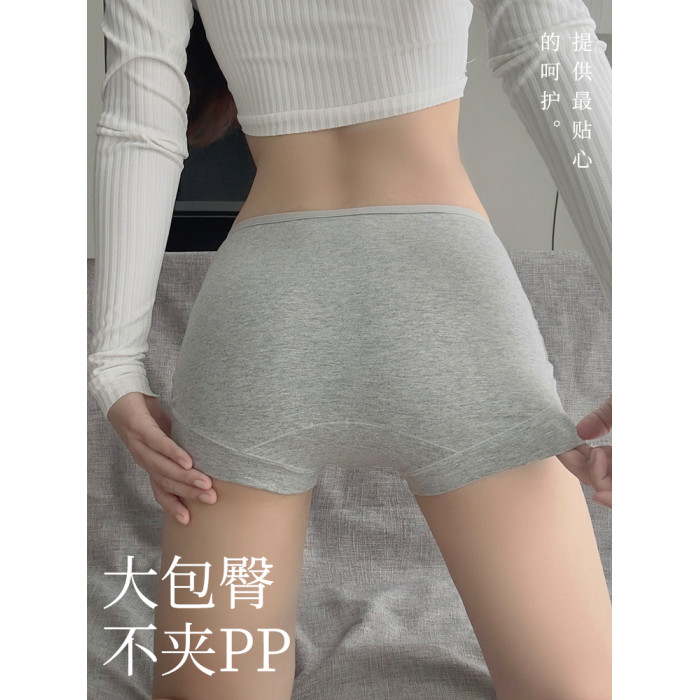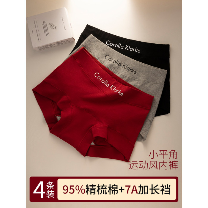 內褲女士純棉抗菌全棉襠無痕中腰包臀女生打底運動風紅色平角短褲