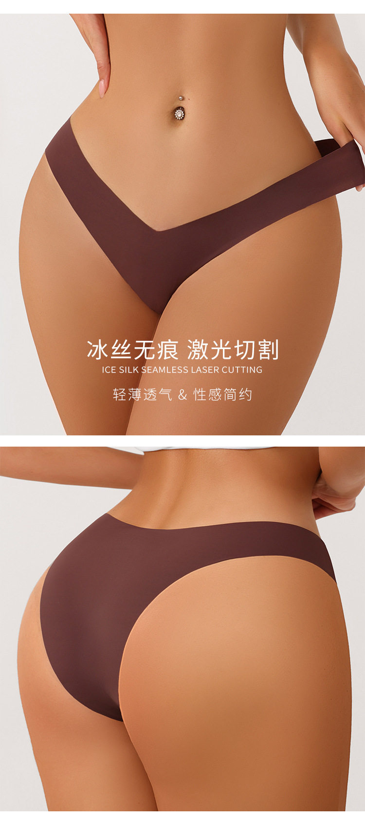 Mitaogirl無痕冰絲運動內褲女性感低腰純棉襠透氣速乾瑜珈丁字褲