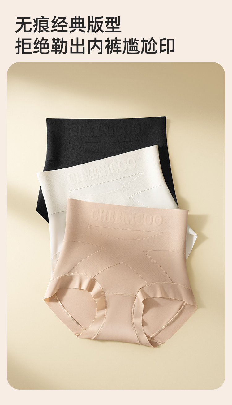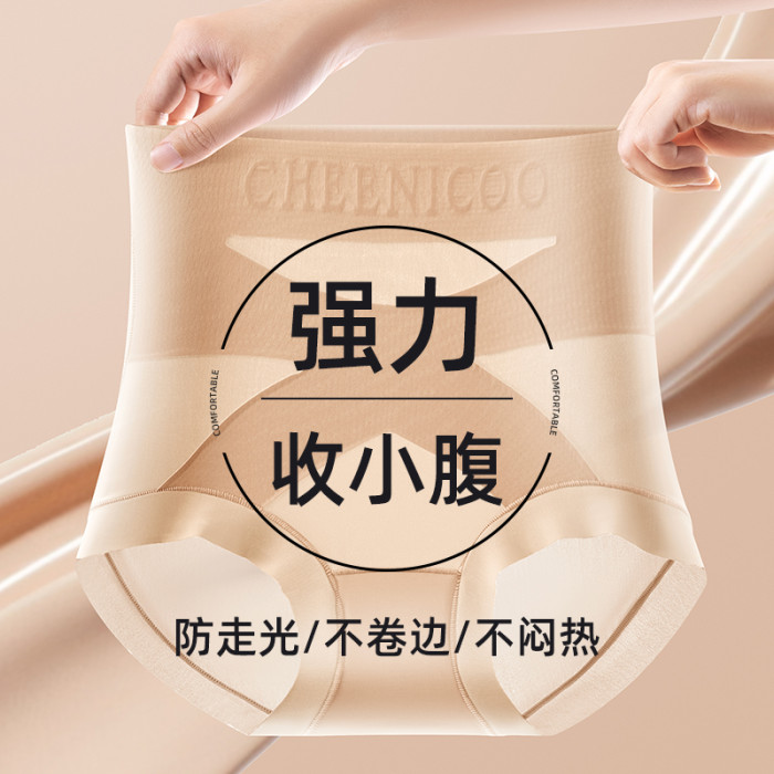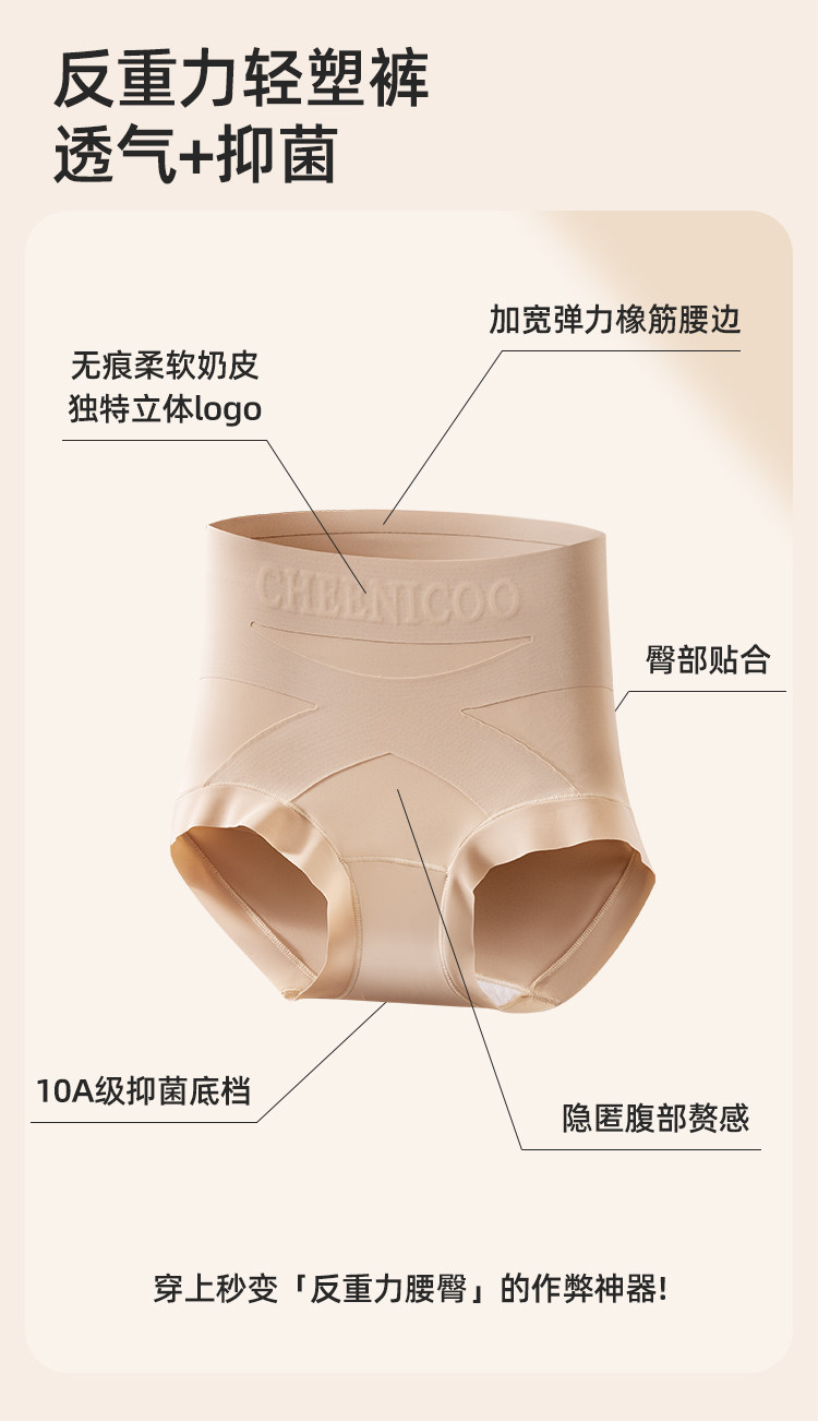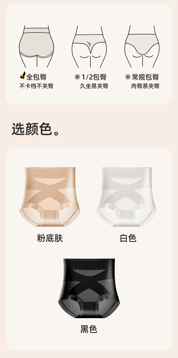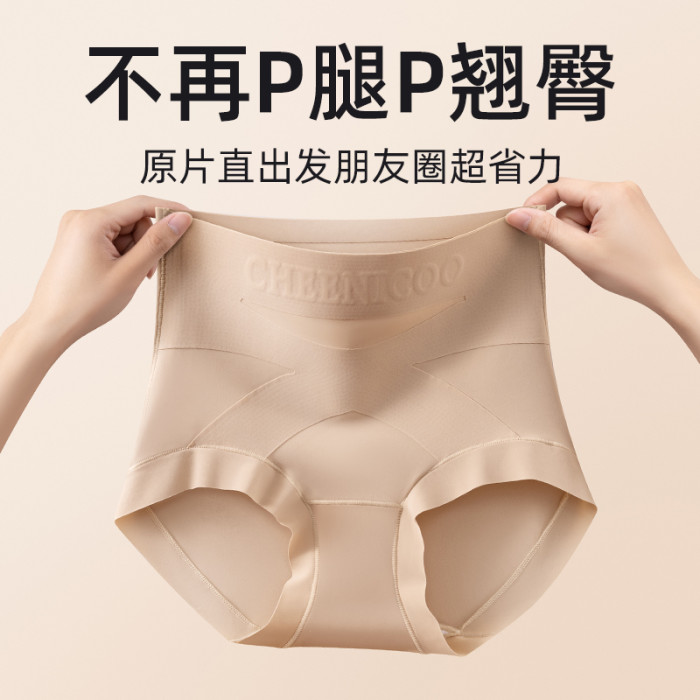 微收腹高腰內褲女士塑形打底褲提臀不卷邊粉底液色三角褲交叉美體