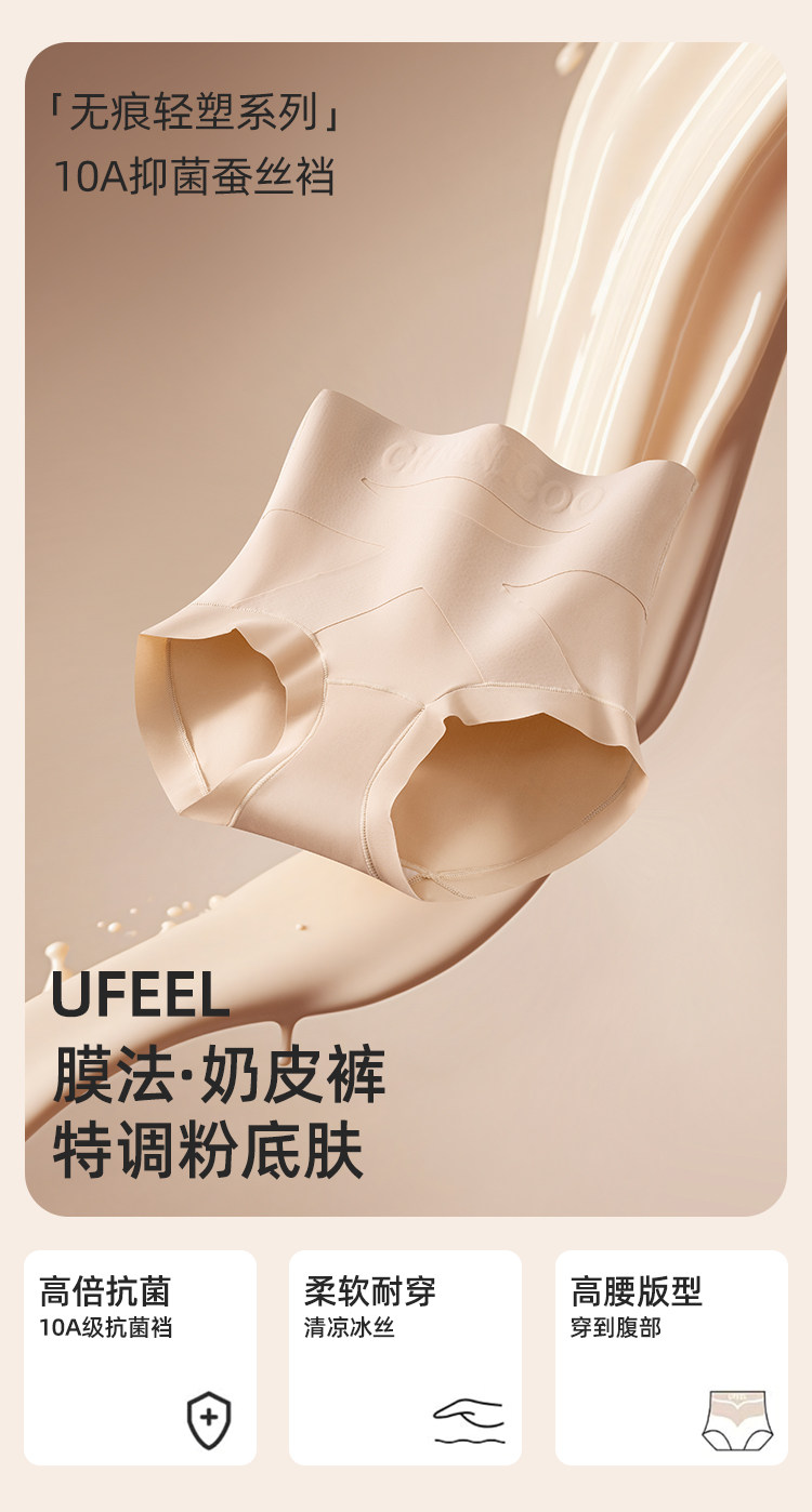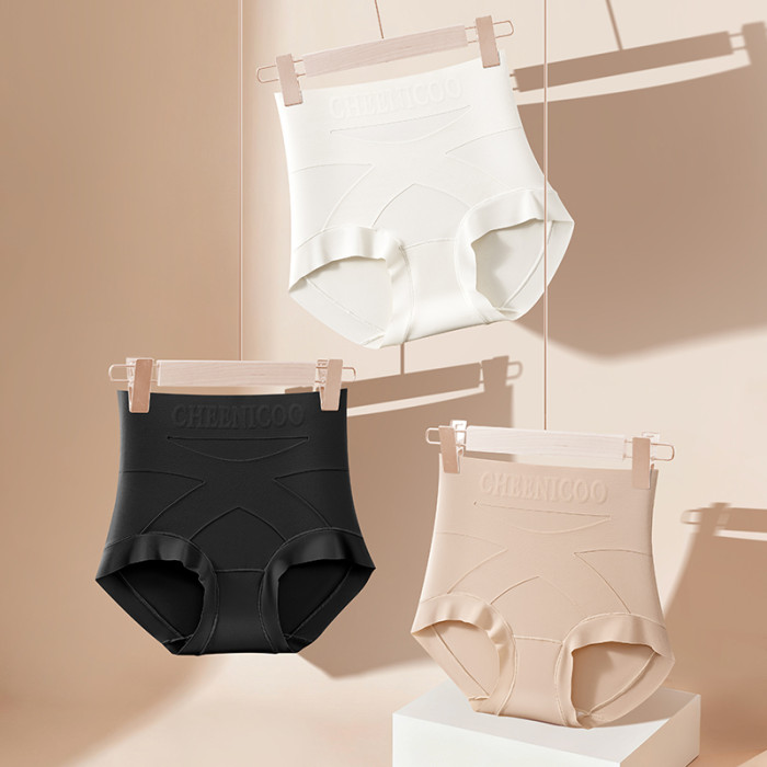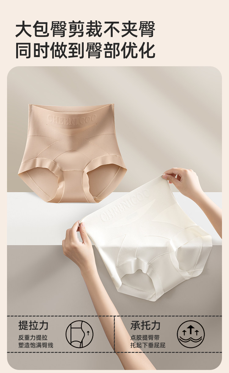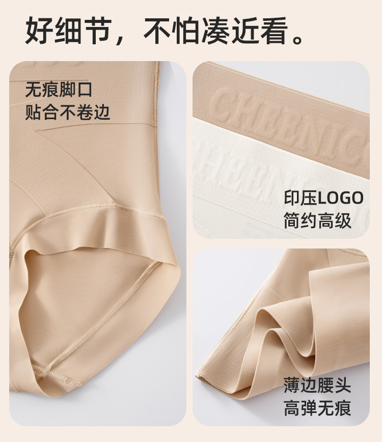 微收腹高腰內褲女士塑形打底褲提臀不卷邊粉底液色三角褲交叉美體