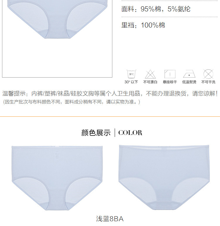 3條9折丨愛美麗商場同款舒適春夏棉質純色不夾臀內褲女高腰平角褲