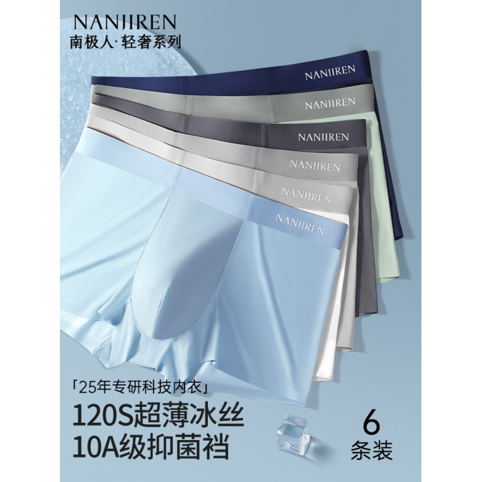 南極人青少年無痕冰絲男士內褲新款寬鬆透氣吸汗夏季薄款平角短褲