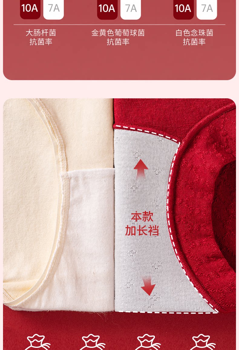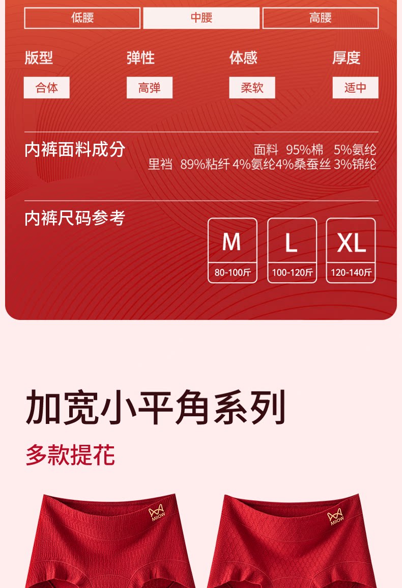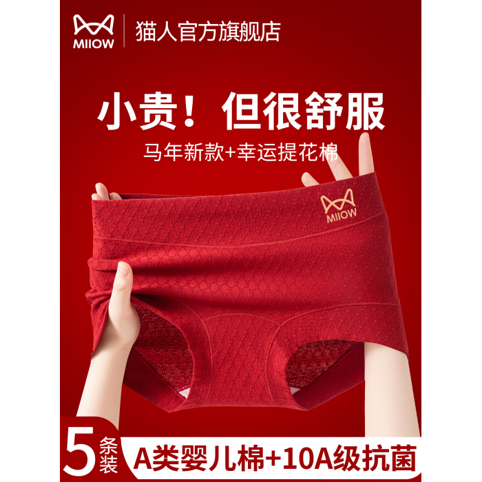貓人紅色內褲女士純棉抗菌襠中腰無痕本命年平角四角短褲馬年新款
