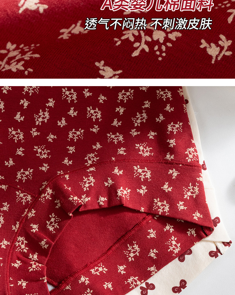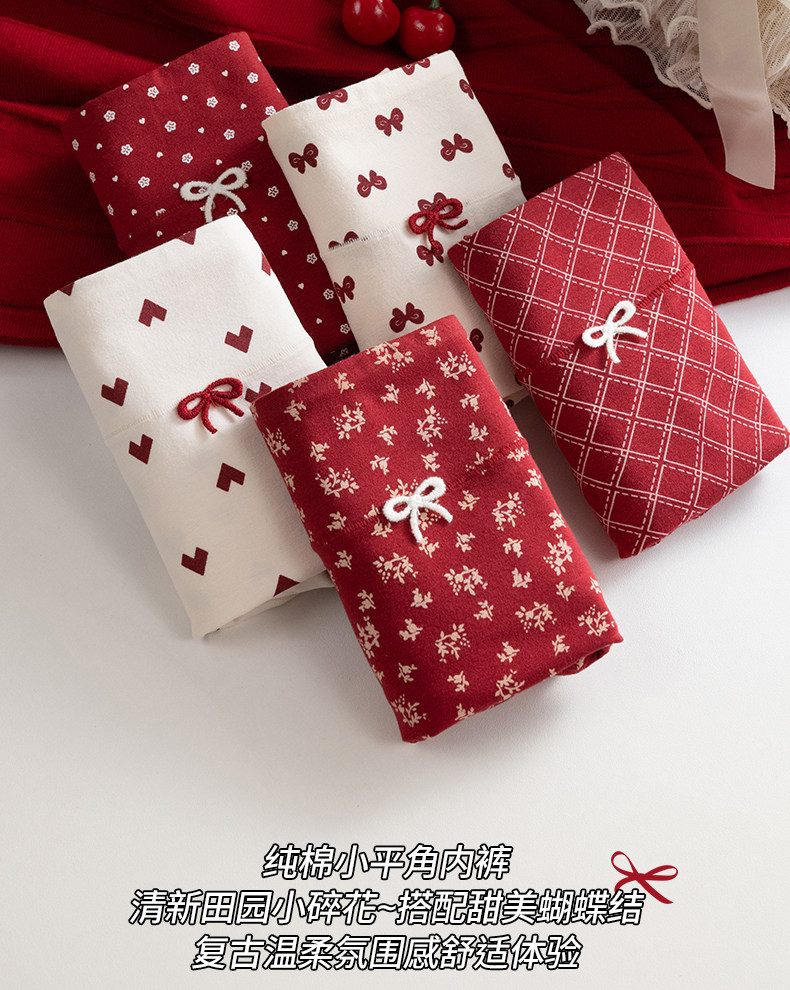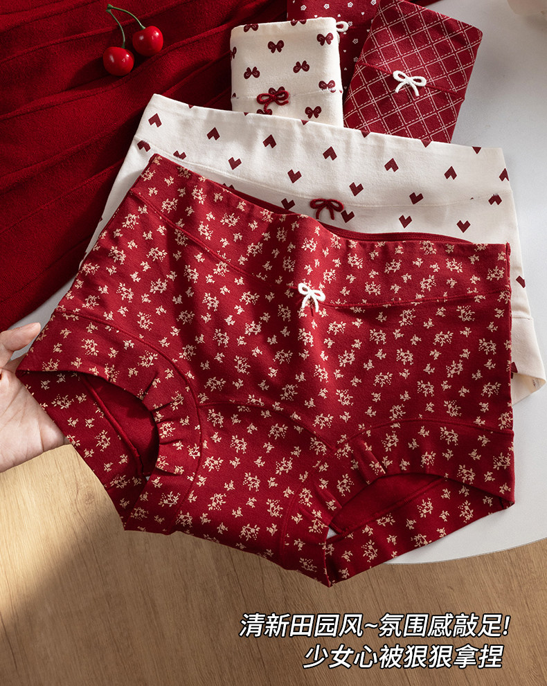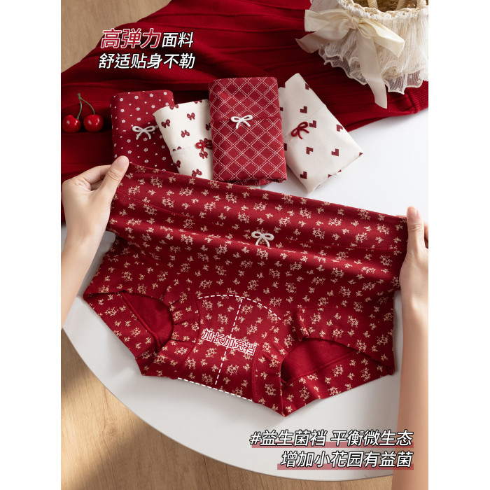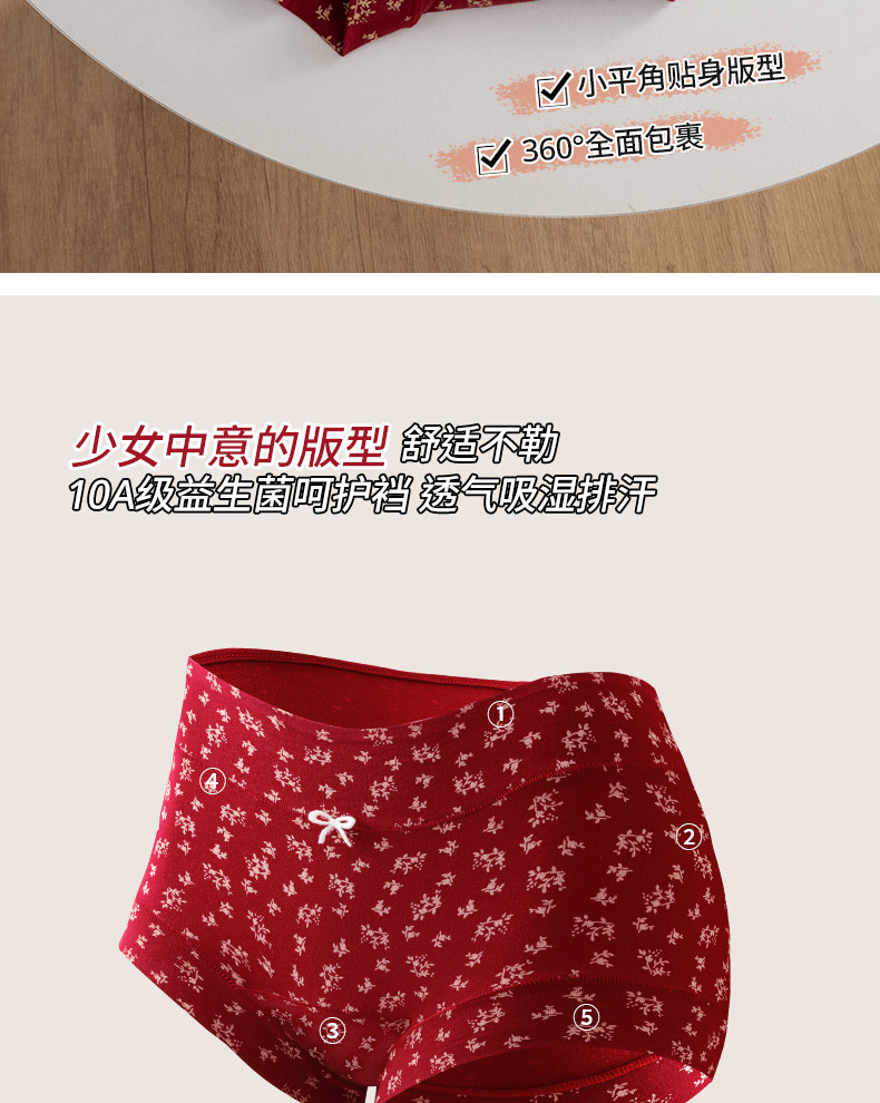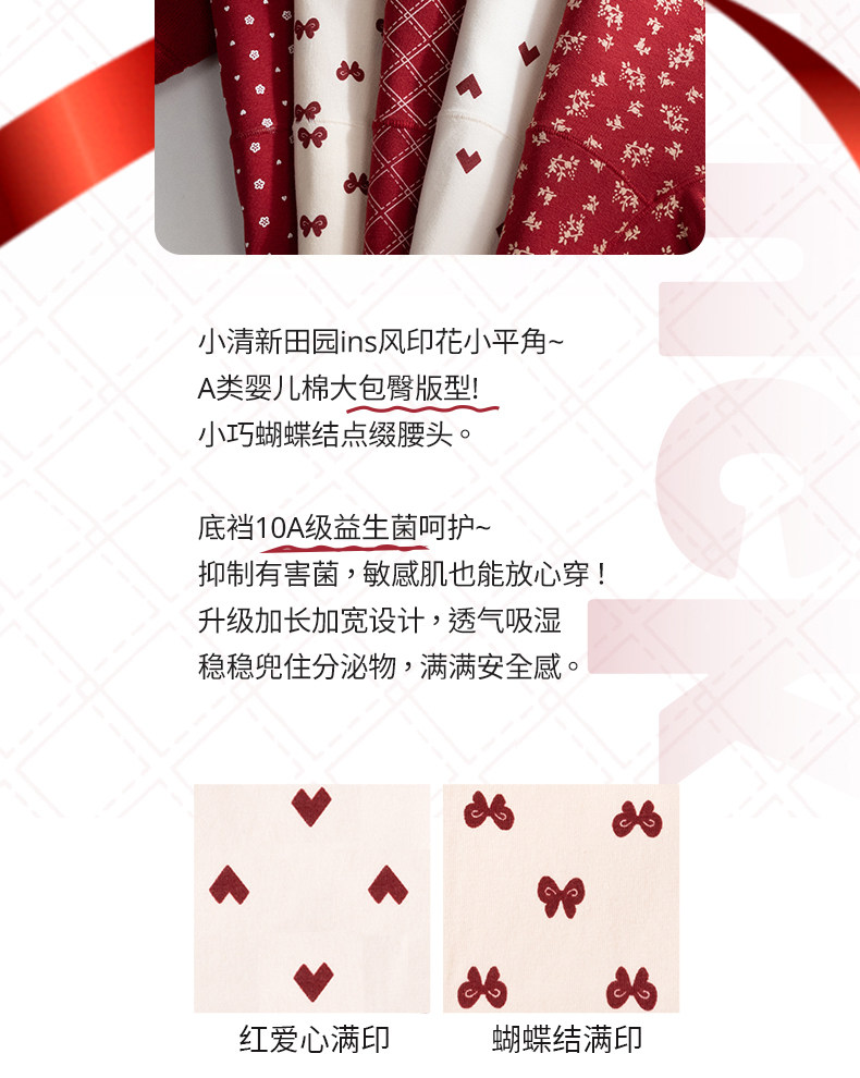 都市麗人純棉女士平角紅色內褲抗菌10A級益生菌少女小碎花四角褲