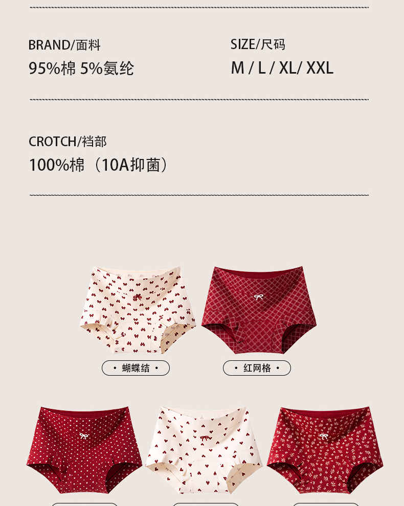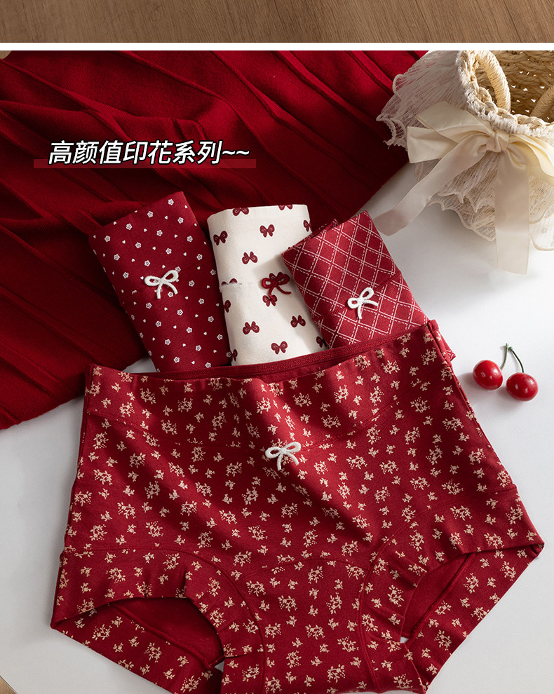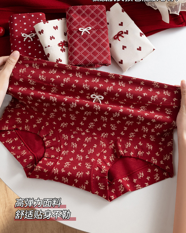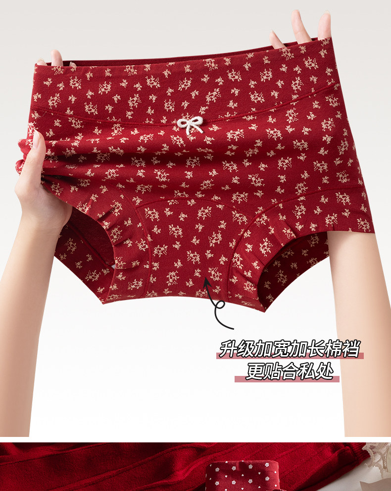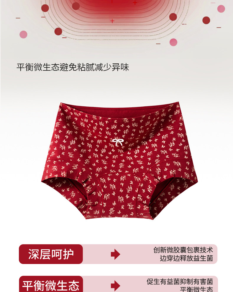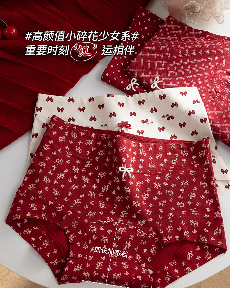 都市麗人純棉女士平角紅色內褲抗菌10A級益生菌少女小碎花四角褲