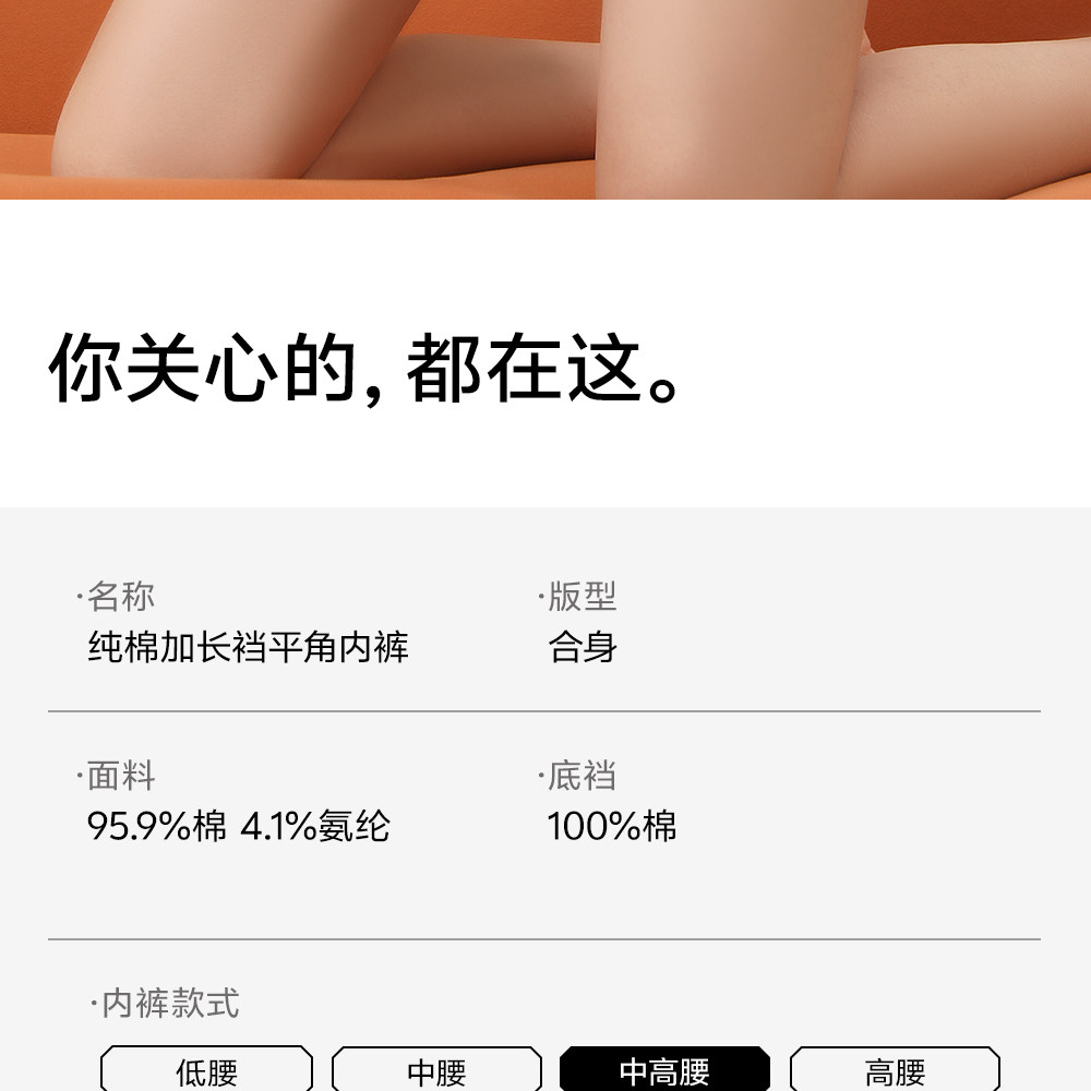 草本初色平角內褲女純棉抑菌加長檔2025新款中高腰不夾臀四角短褲
