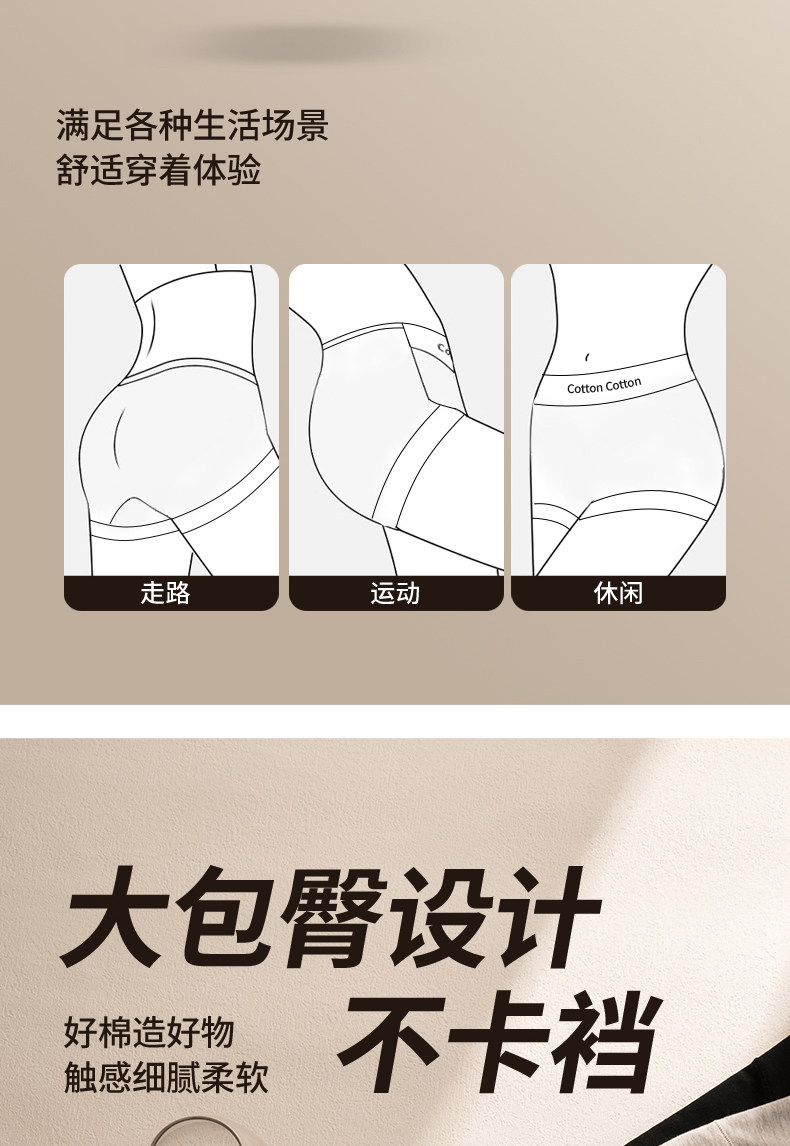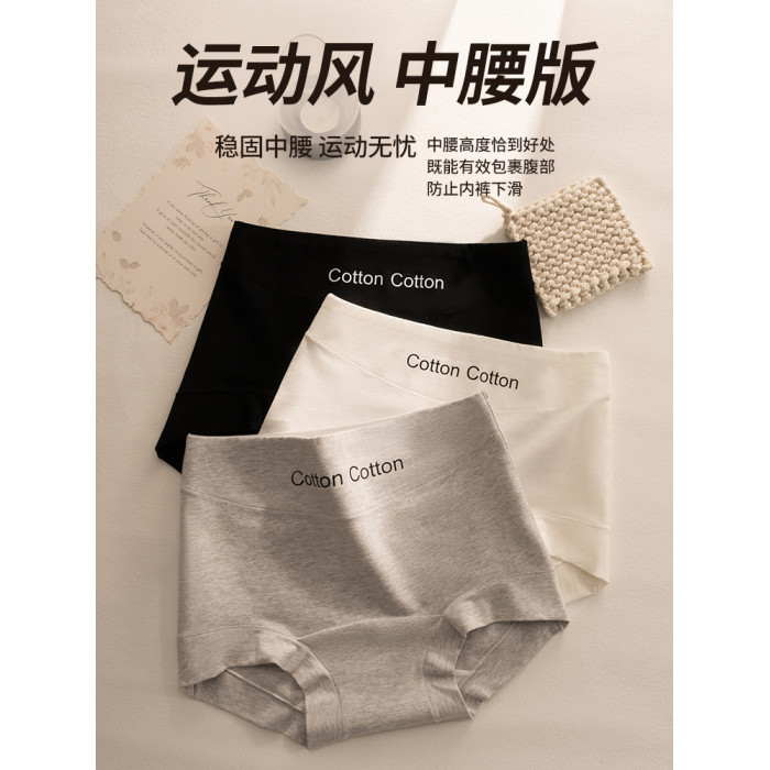 貓人內褲女士純棉2026新款全棉抗菌襠無痕中腰女生運動風平角褲