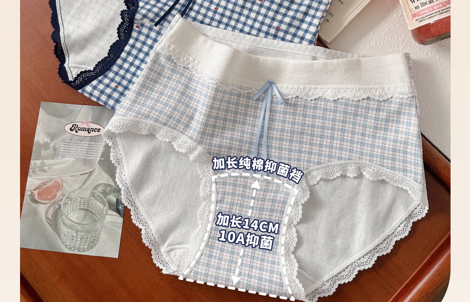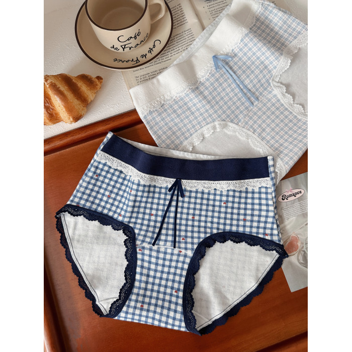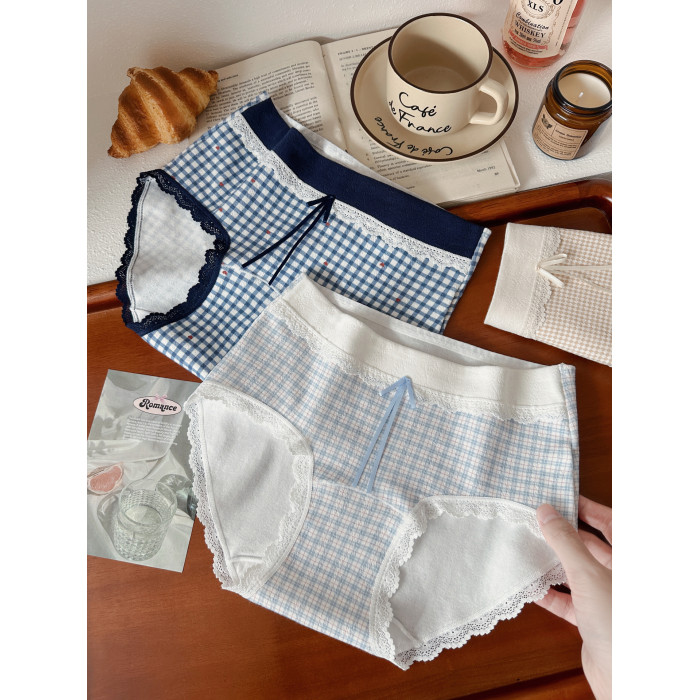 復古撞色格子A類純棉大碼內褲女10A抗菌加長襠2026新款胖MM三角褲