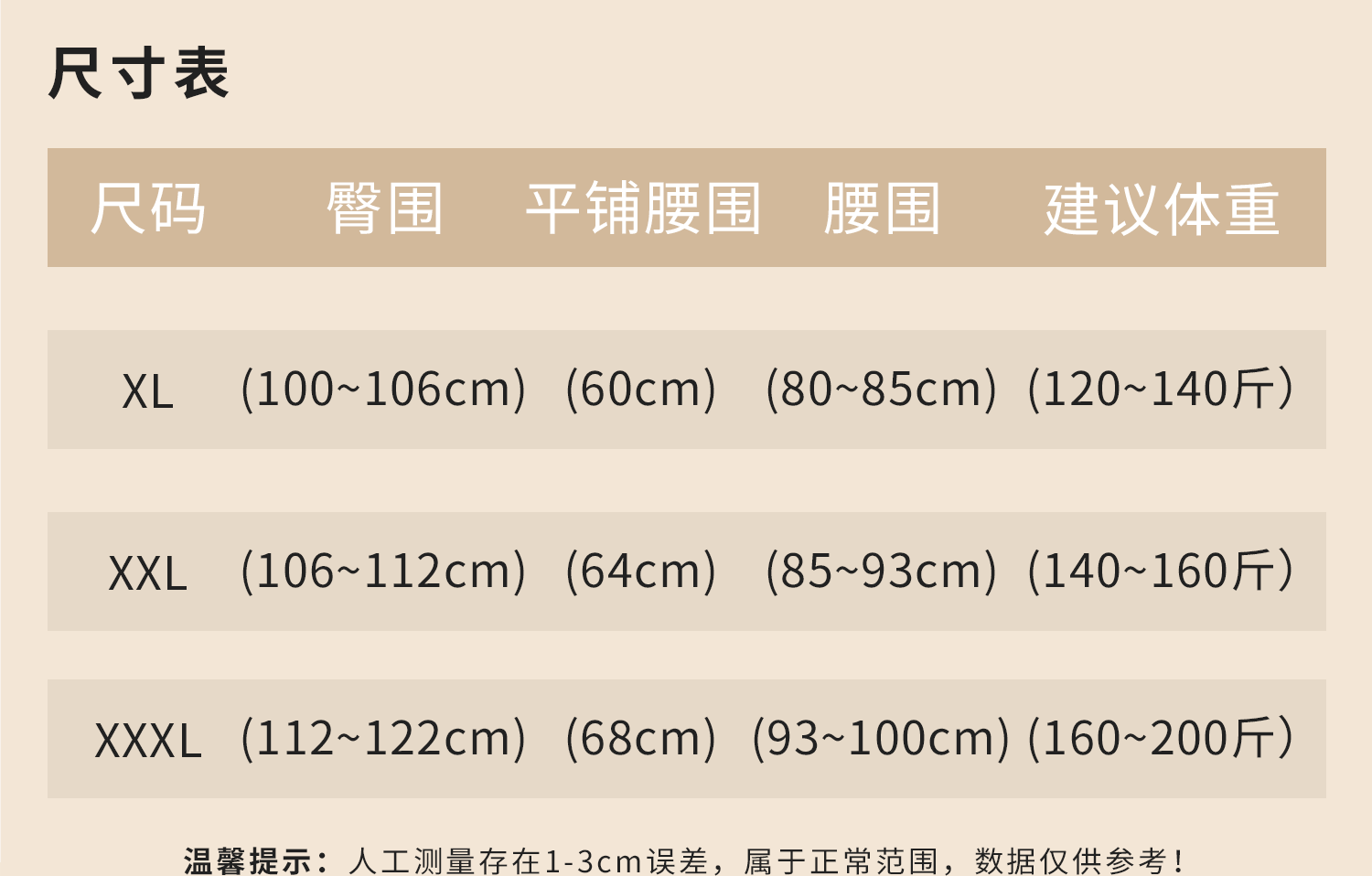 款式及尺寸: