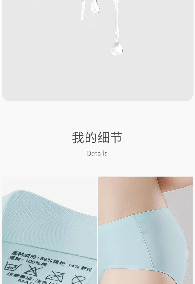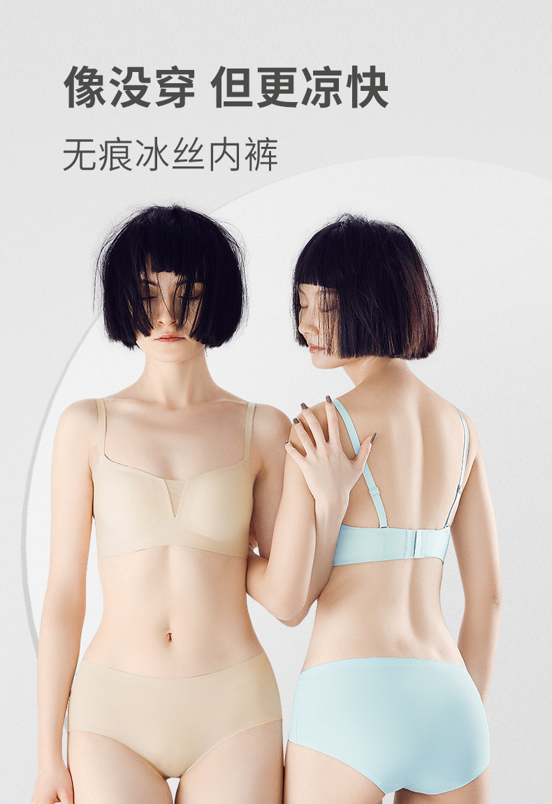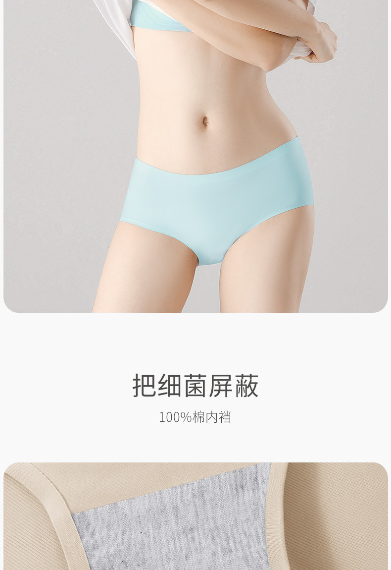 埃茉AIMO 5條裝內褲女無痕冰絲透氣超薄底褲中腰一片式少女三角褲