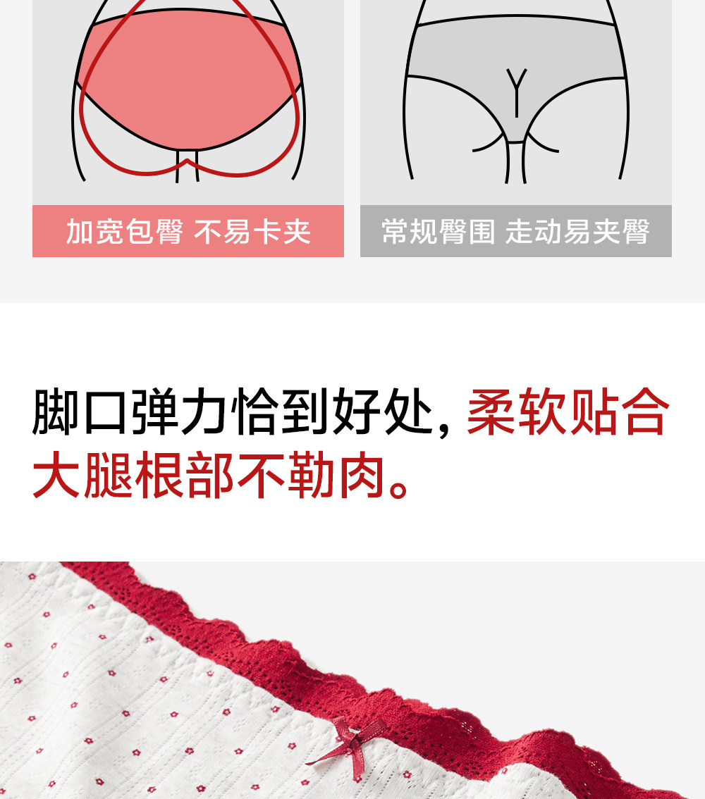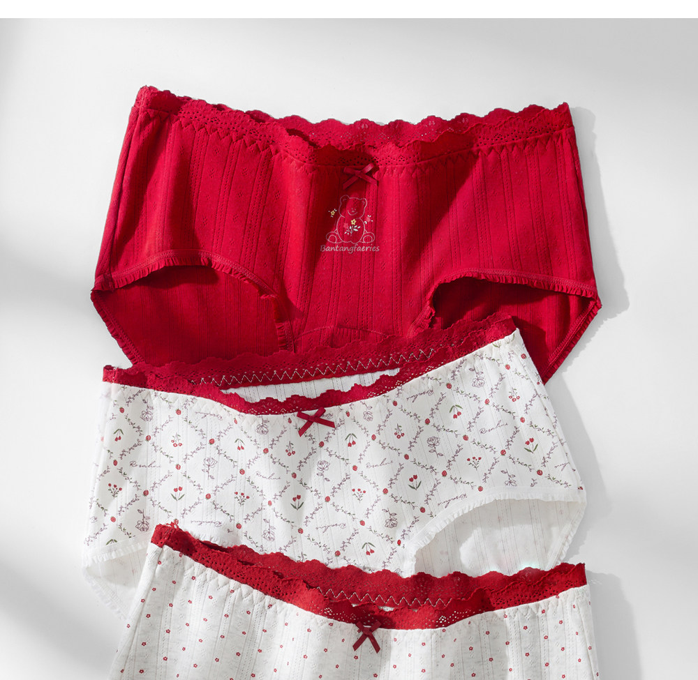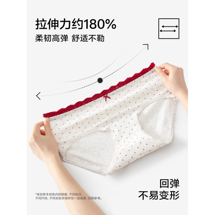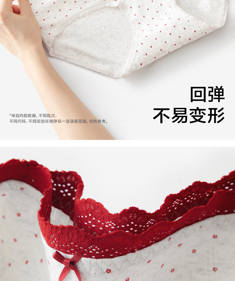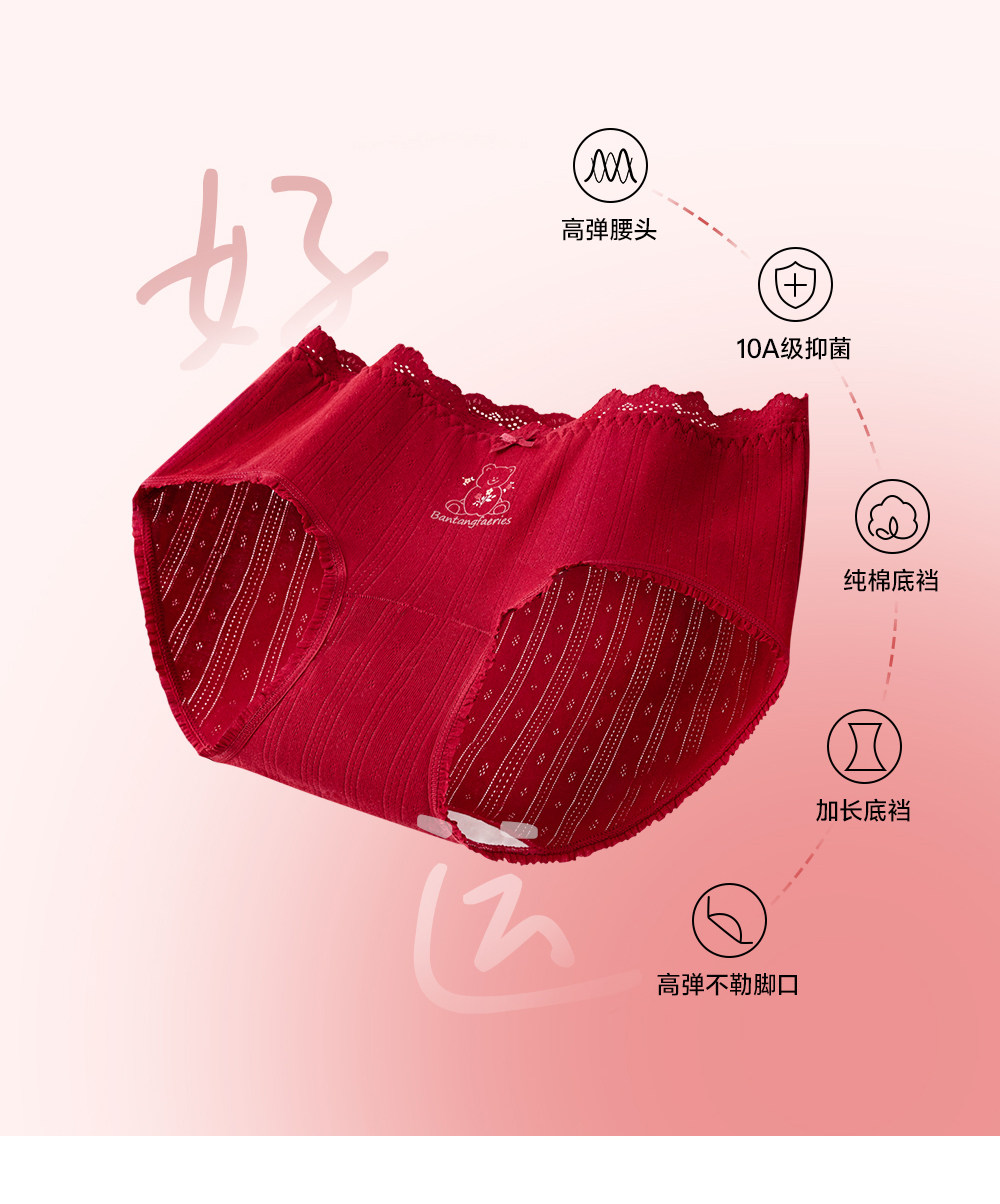 草本初色內褲女紅色純棉抑菌襠馬年新款中腰蕾絲邊不夾臀少女三角
