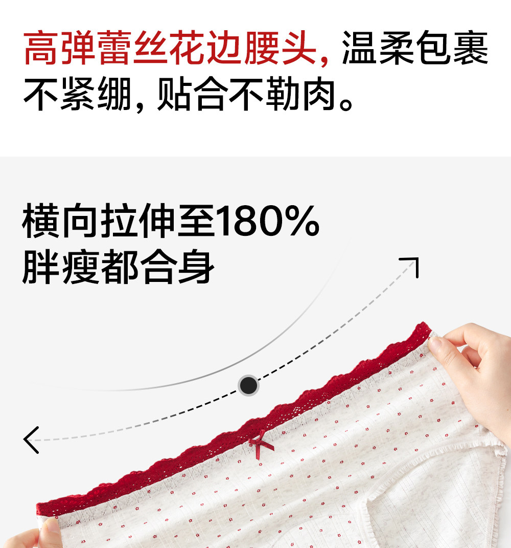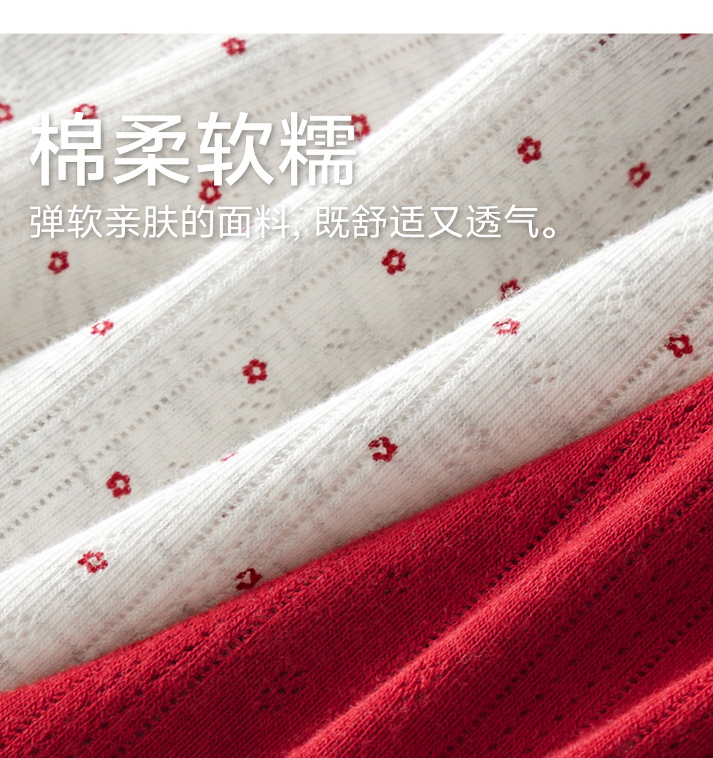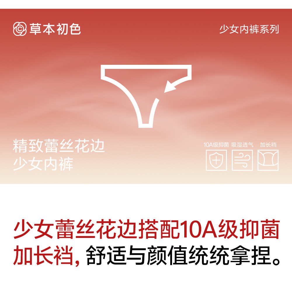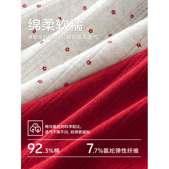 草本初色內褲女紅色純棉抑菌襠馬年新款中腰蕾絲邊不夾臀少女三角