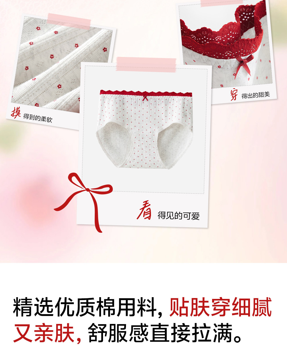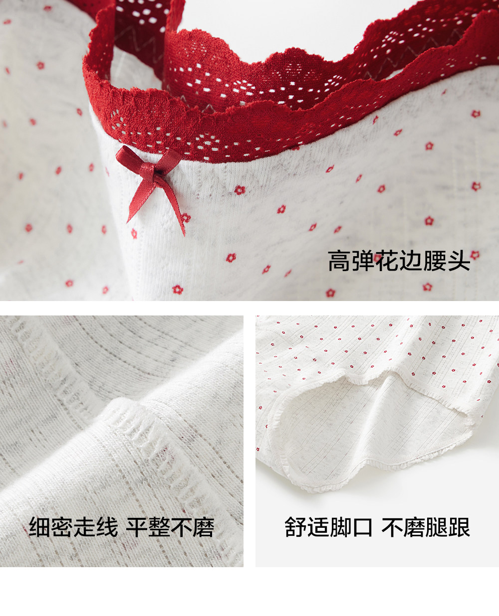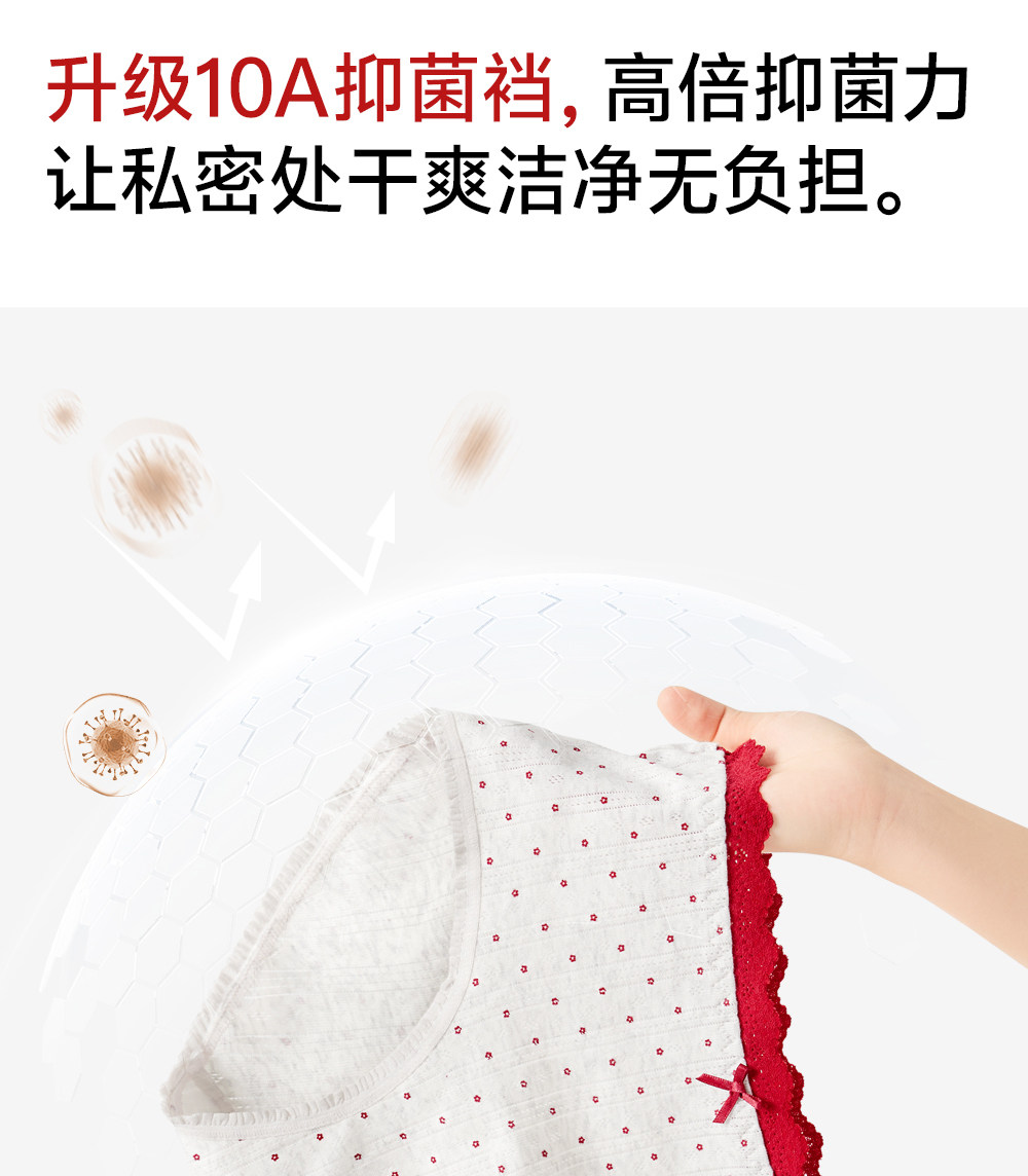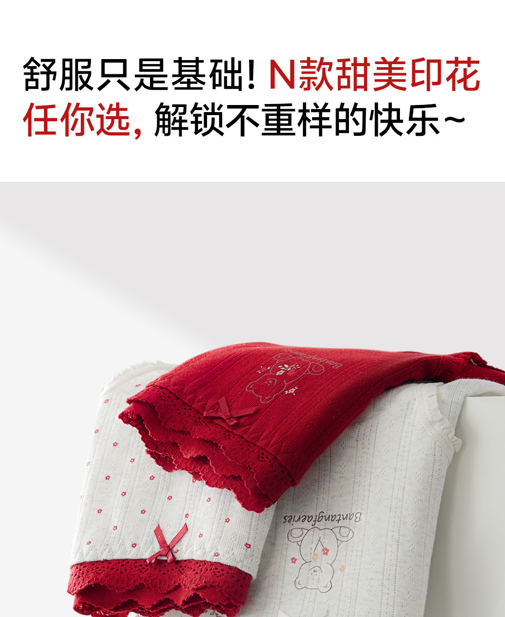 草本初色內褲女紅色純棉抑菌襠馬年新款中腰蕾絲邊不夾臀少女三角