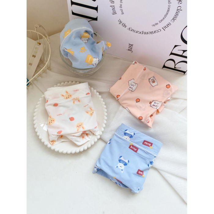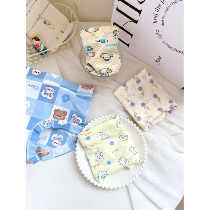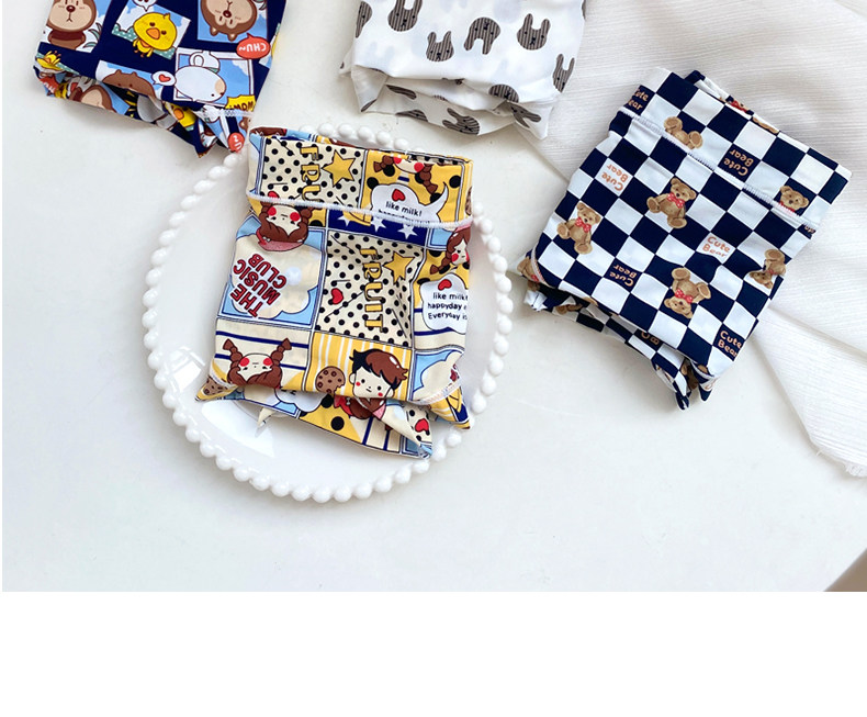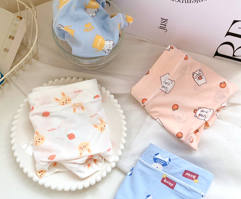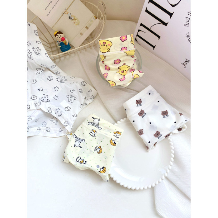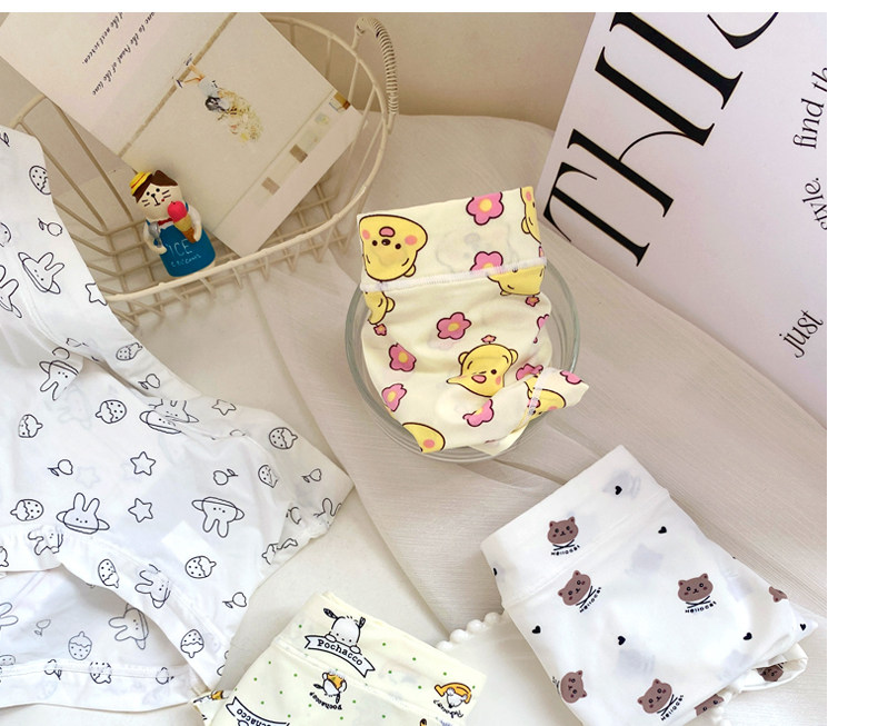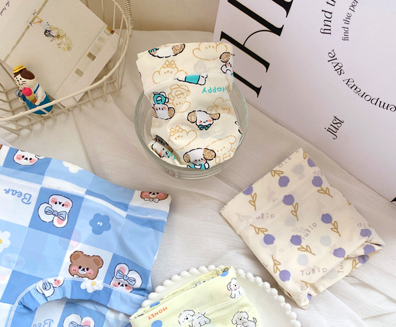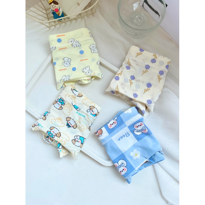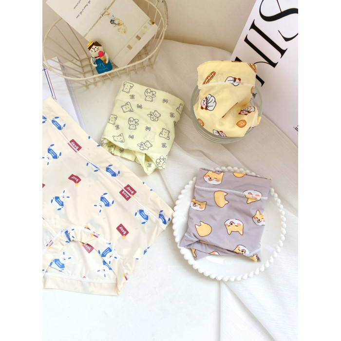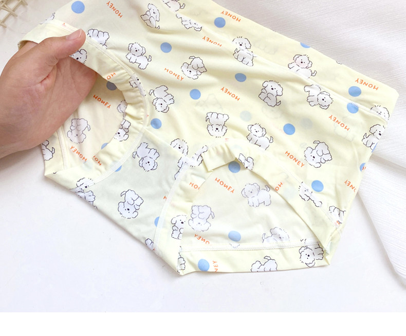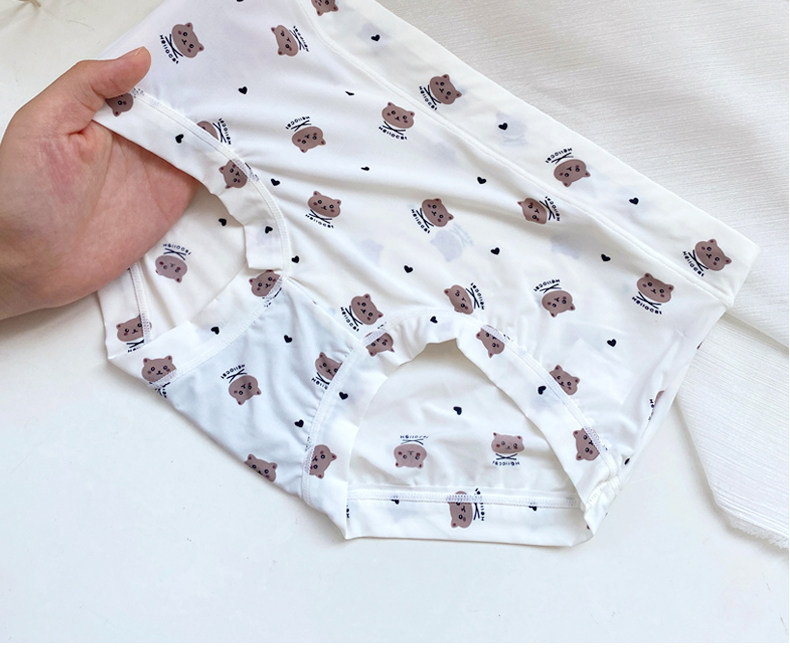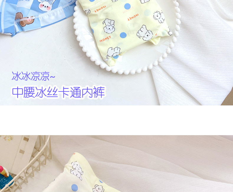 4條冰絲內褲女可愛牛奶絲日系卡通中腰學生少女生夏季薄款三角褲