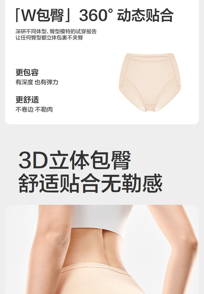 全棉時代女士純棉高腰三角內褲立體貼身高彈內褲女款2025新款短褲