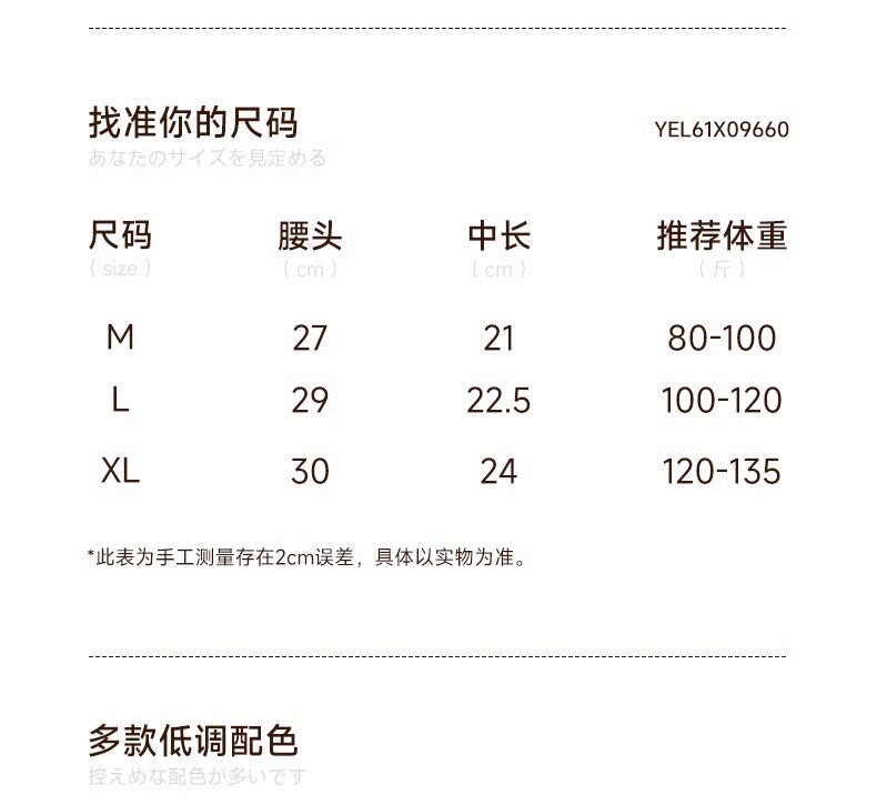 款式及尺寸: