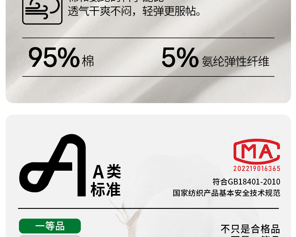 | 材質成分 | 棉95% 聚氨酯彈性纖維(氨綸)5% |