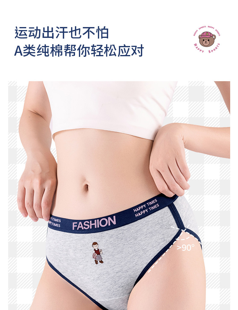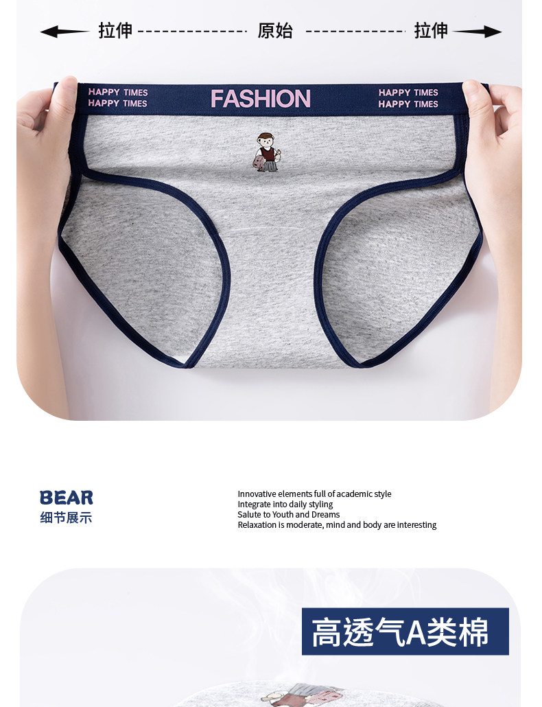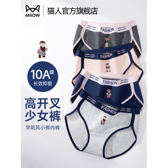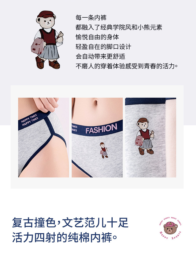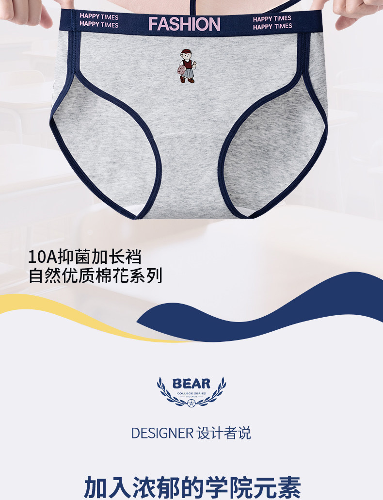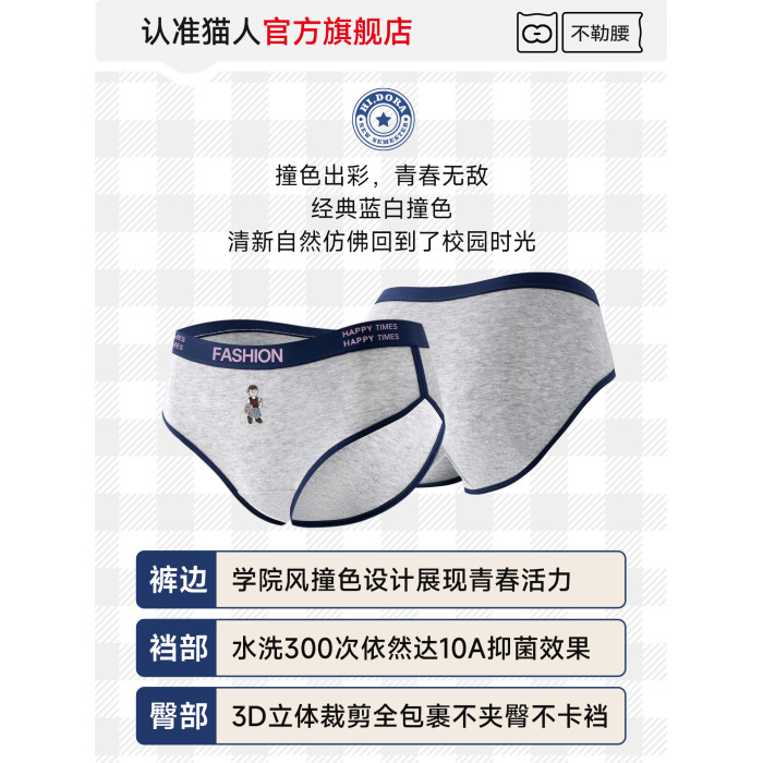 貓人小熊純棉內褲女士10A抑菌全棉加長襠女生美式復古運動三角褲