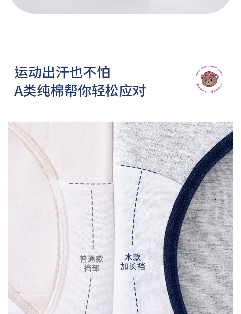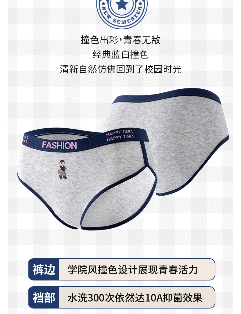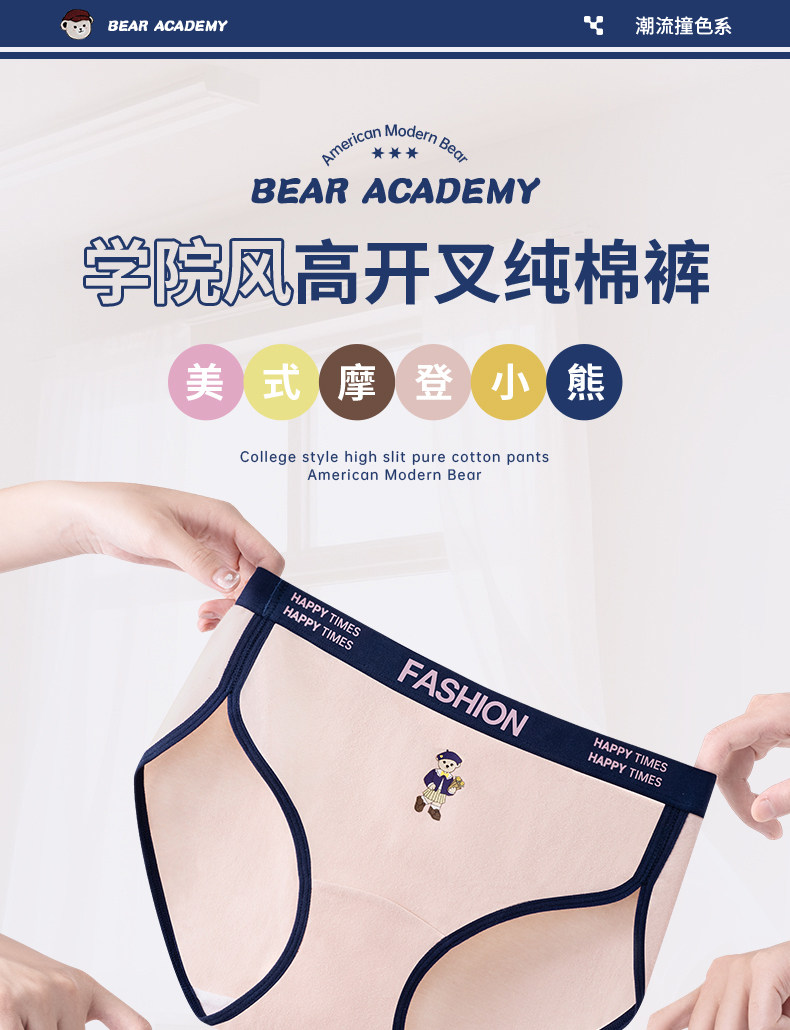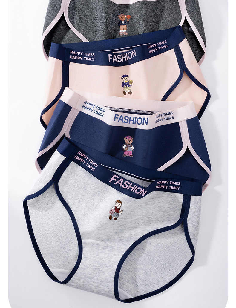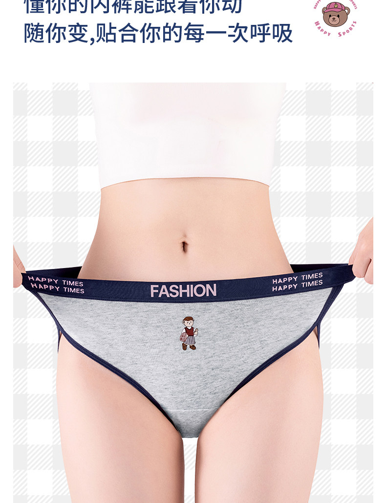 貓人小熊純棉內褲女士10A抑菌全棉加長襠女生美式復古運動三角褲