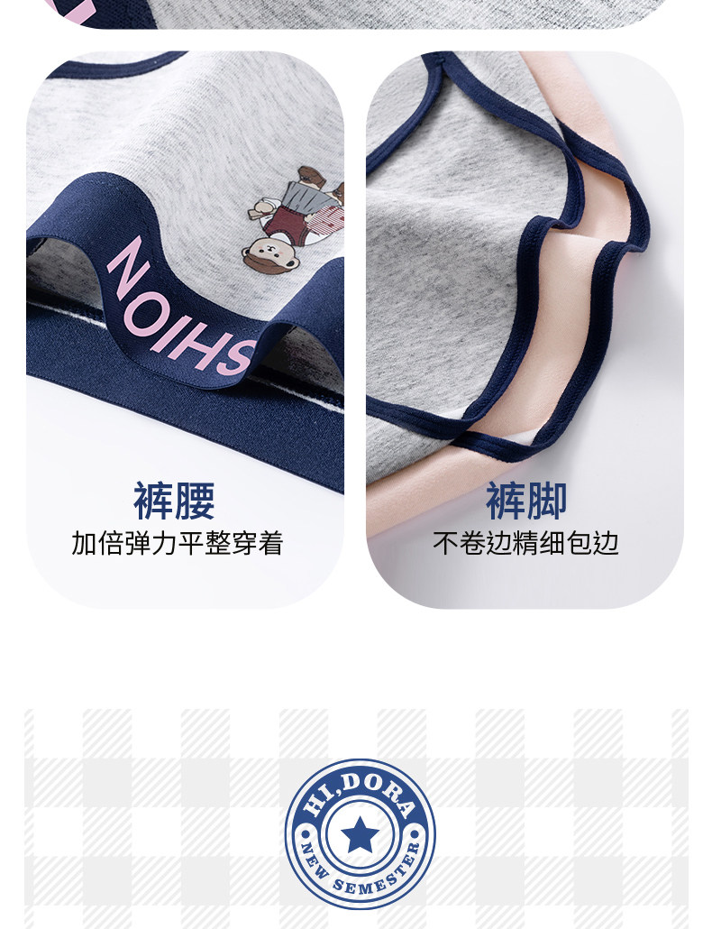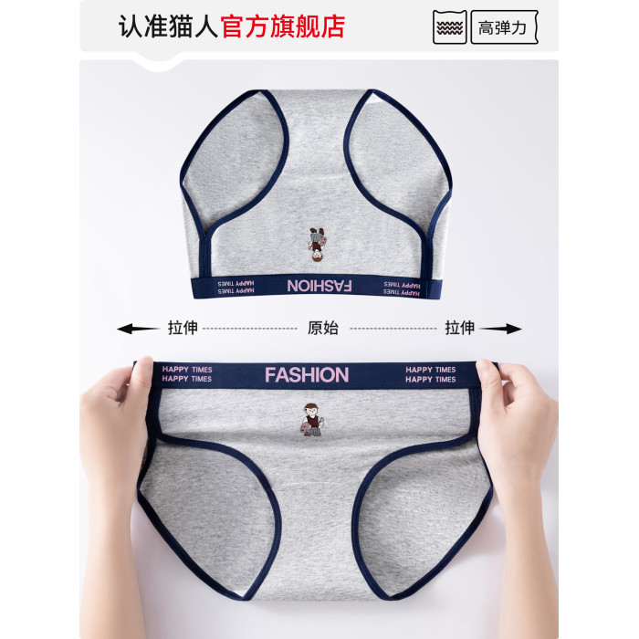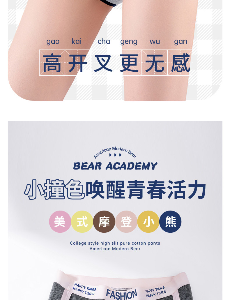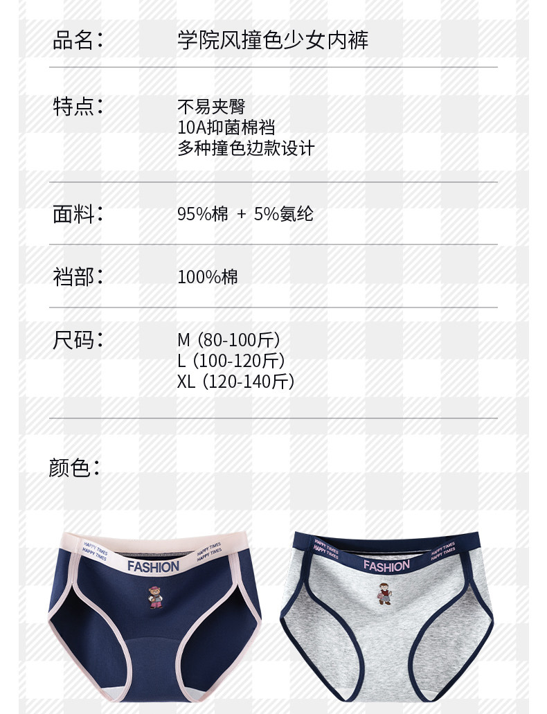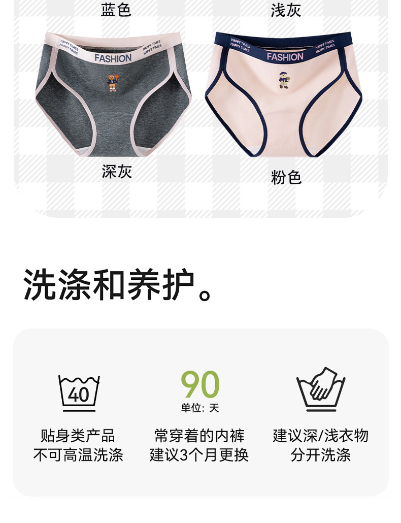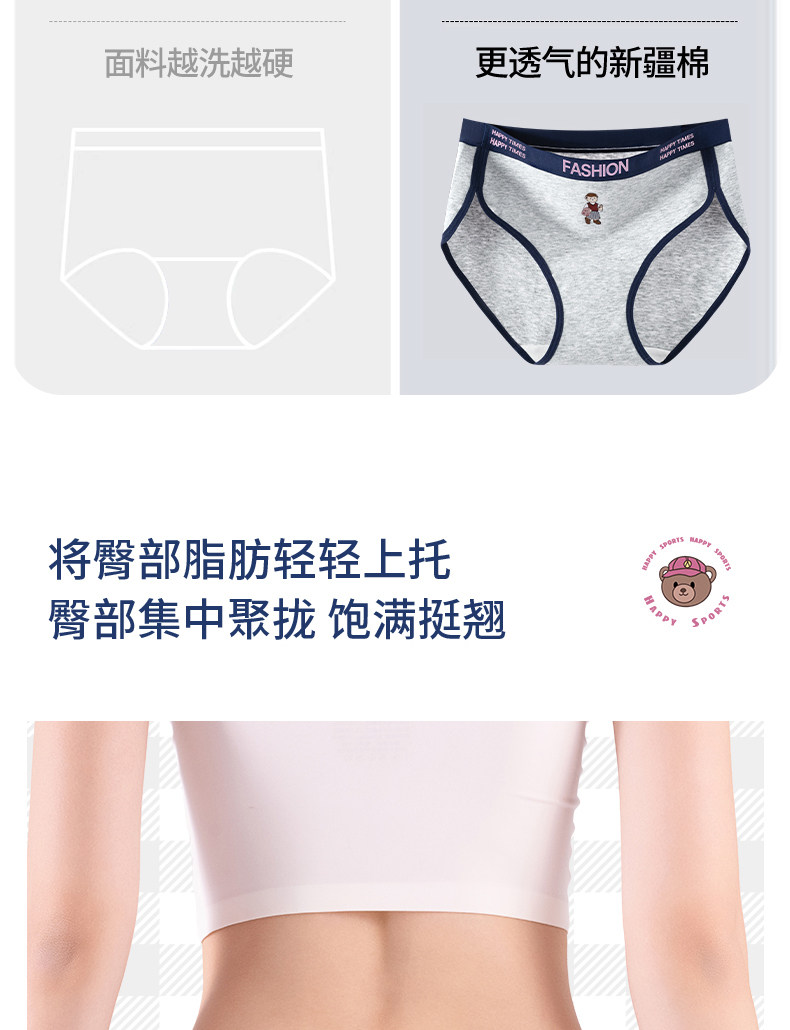 貓人小熊純棉內褲女士10A抑菌全棉加長襠女生美式復古運動三角褲