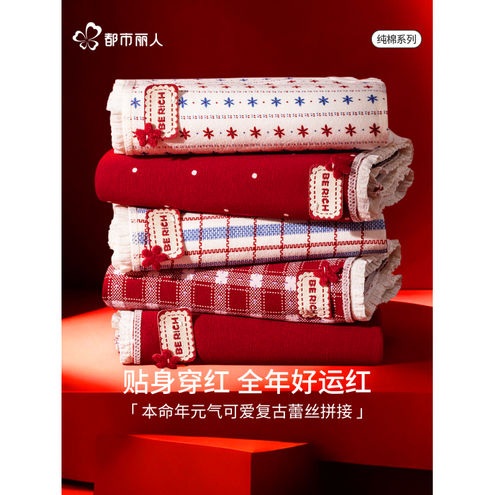 都市麗人本命年紅內褲女純棉2026新款馬年全棉抗菌襠蕾絲結婚三角