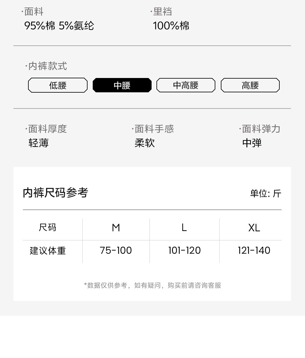 襠部材質成分 棉95.0% 聚氨酯彈性纖維(氨綸)5.0%