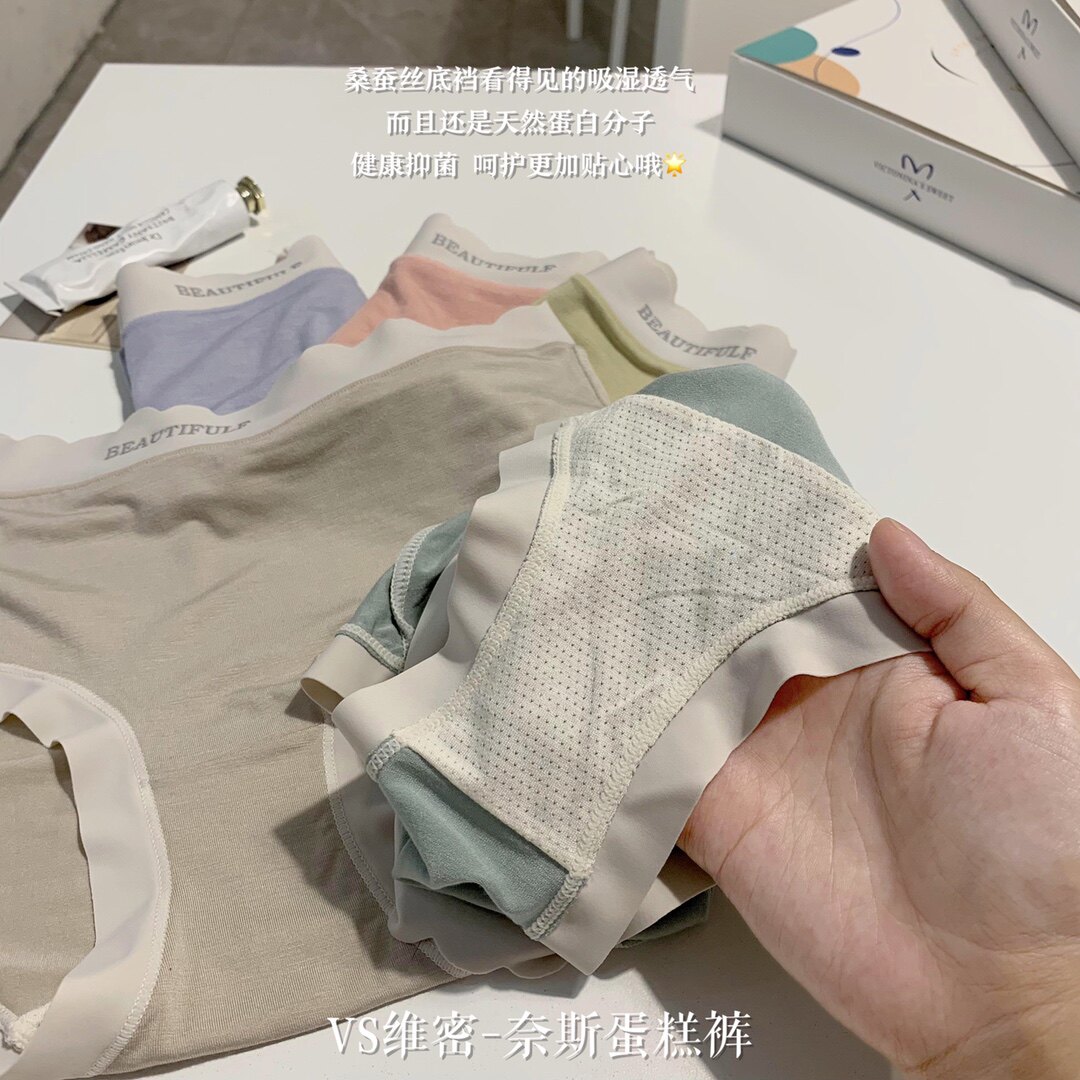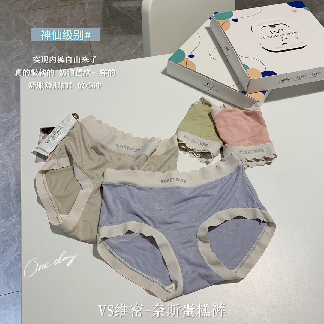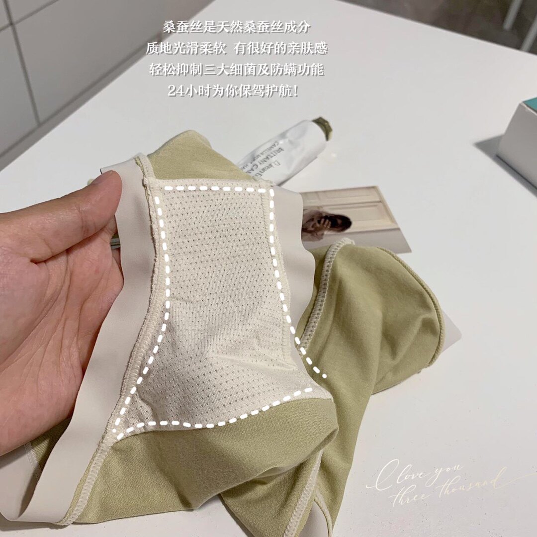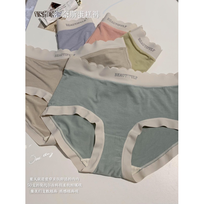 夏季新款奈斯蛋糕莫代爾舒適中腰桑蠶絲抗菌襠透氣包臀三角褲女士