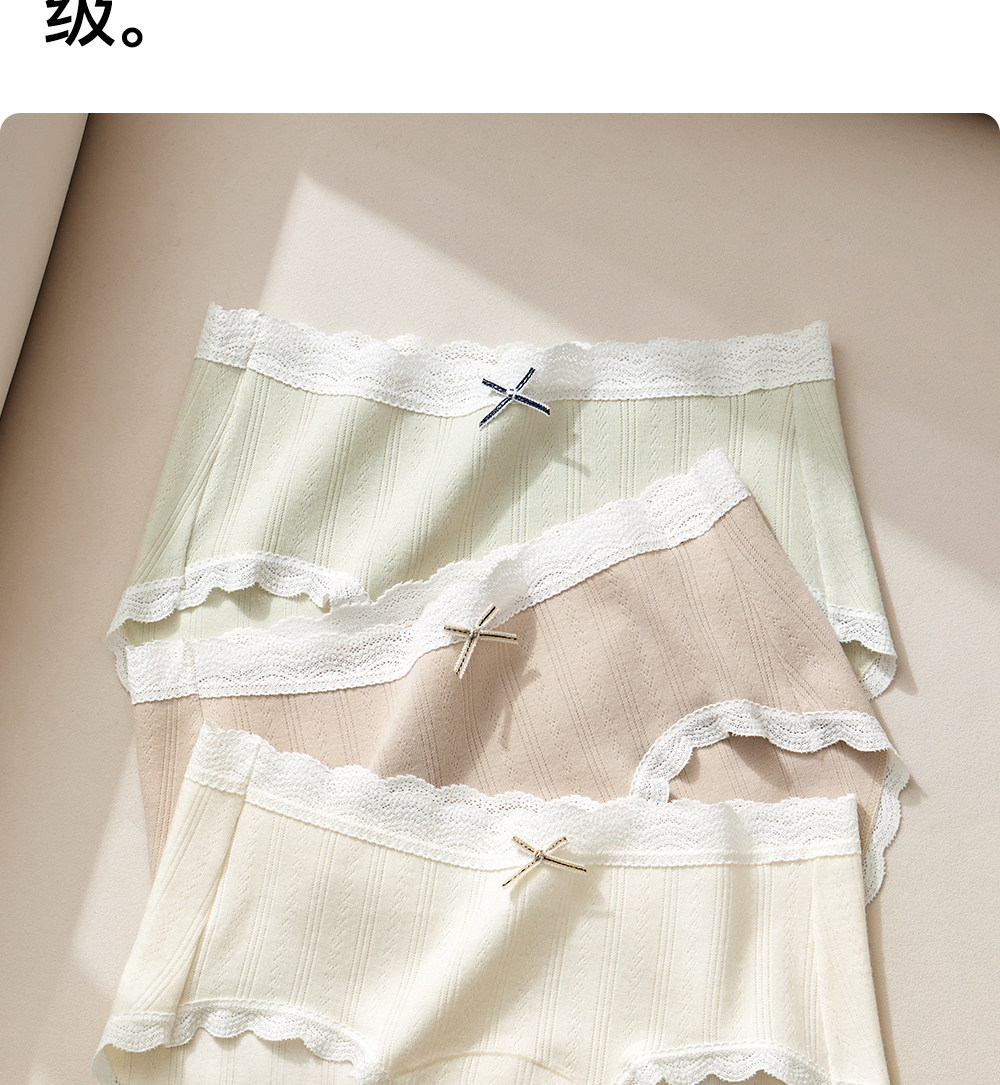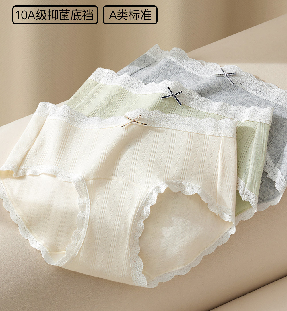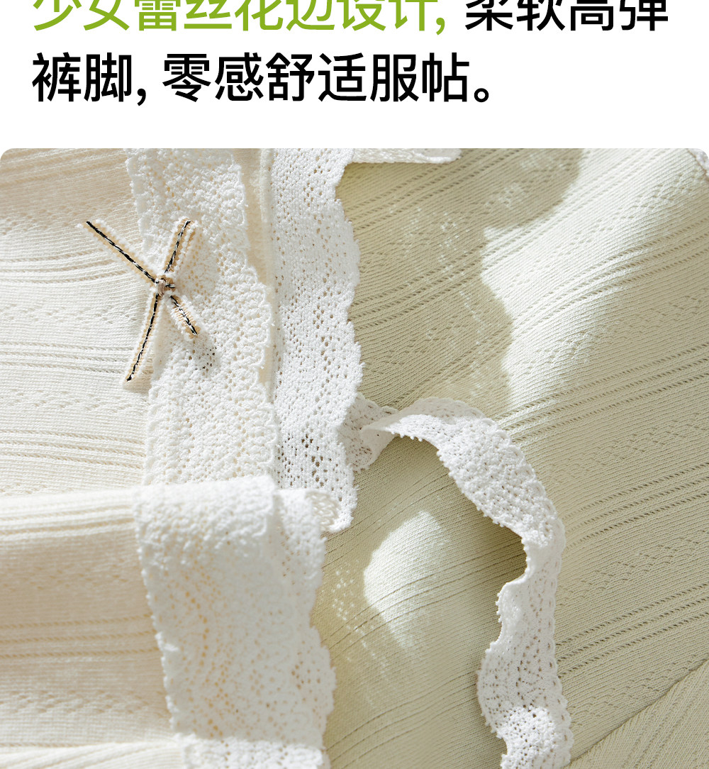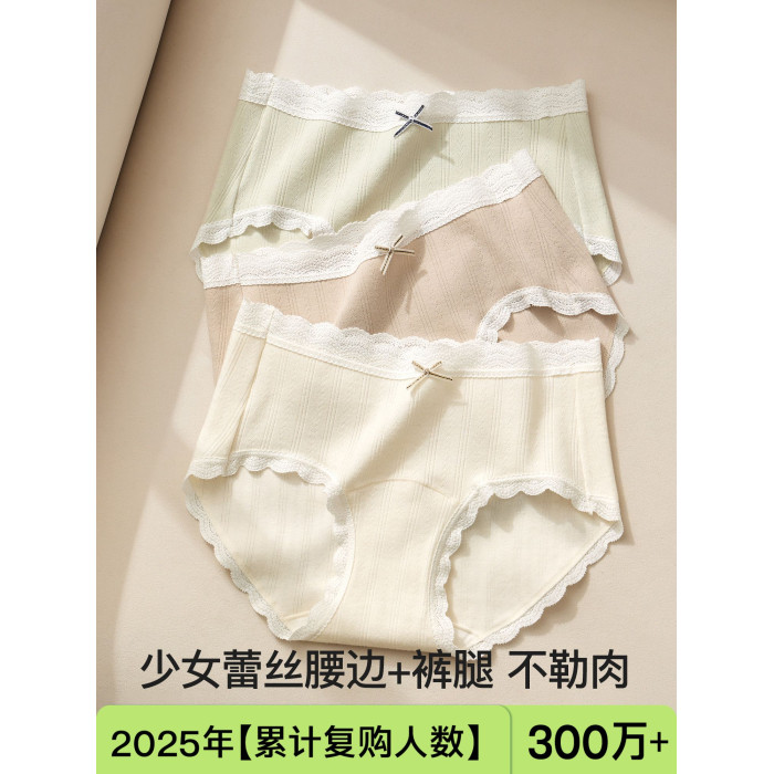 【10A級抑菌】內褲女生純棉蕾絲全棉加長襠少女透氣中腰女三角褲