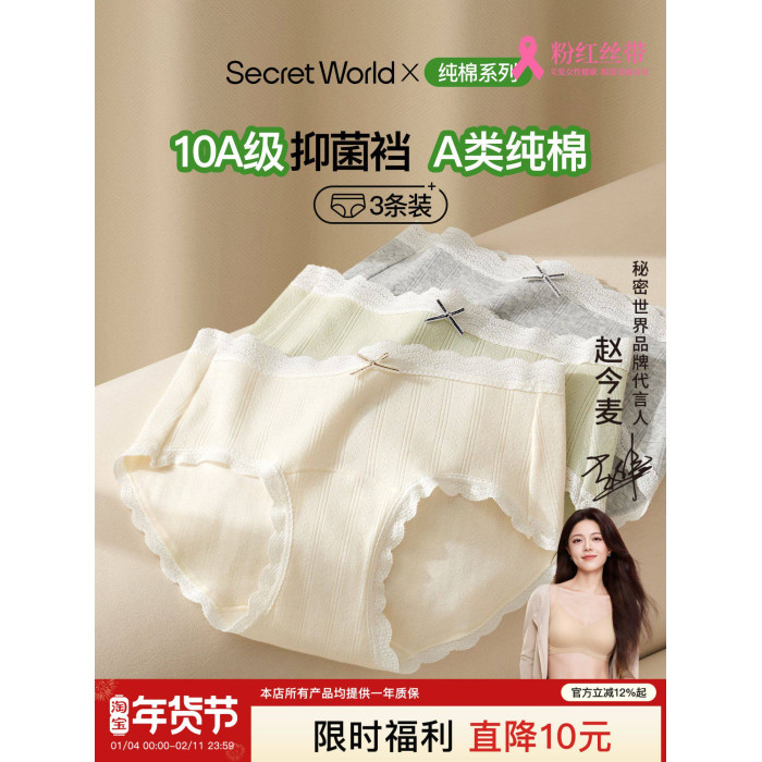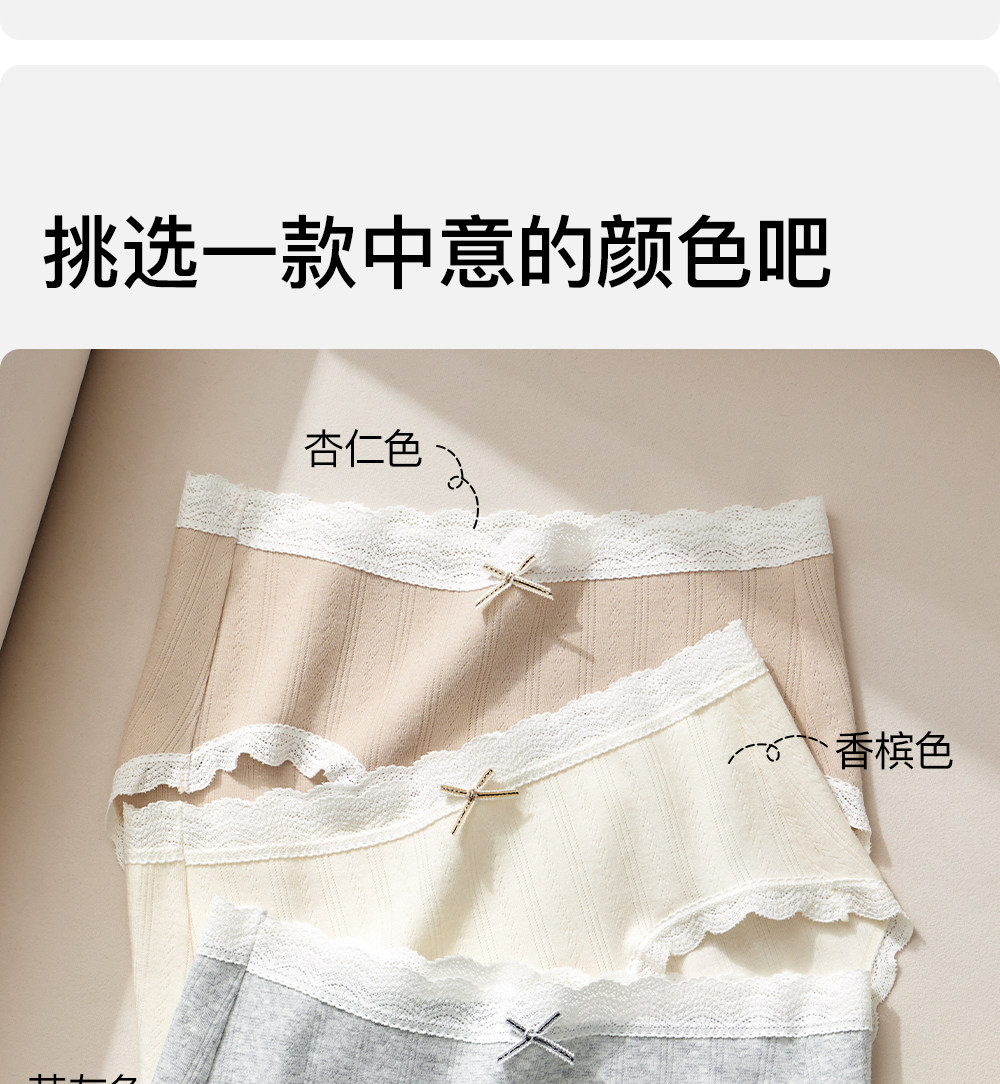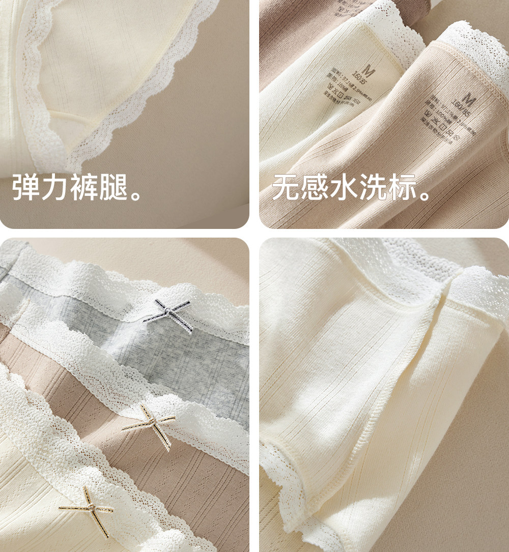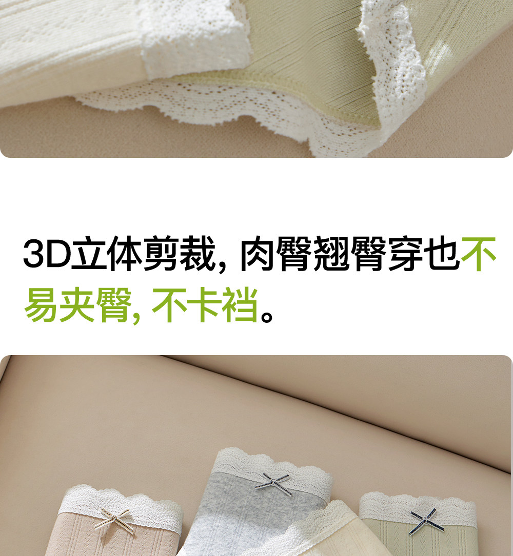 【10A級抑菌】內褲女生純棉蕾絲全棉加長襠少女透氣中腰女三角褲