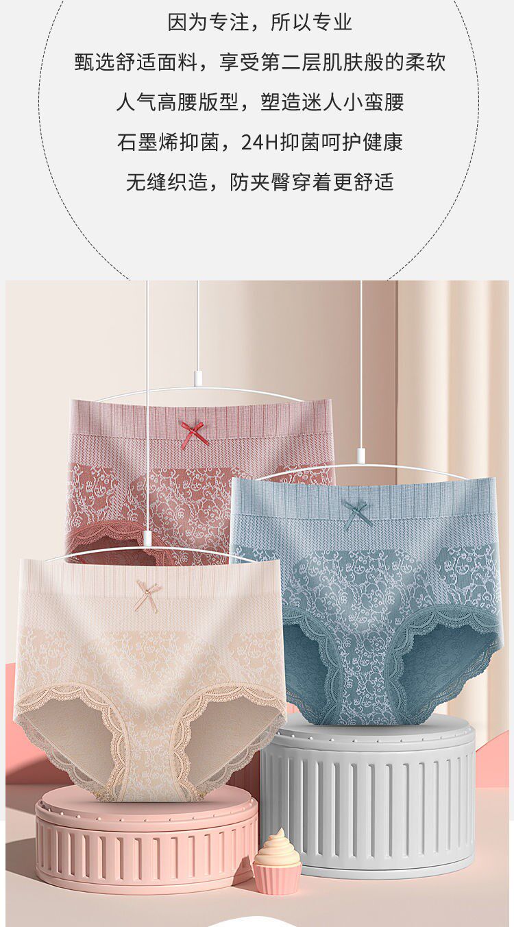 4條裝新款內褲女士石墨烯純棉襠中高腰收腹提臀大碼塑身三角內褲