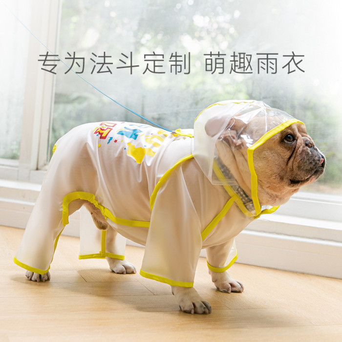 英文彩印磨砂四腳鬭牛款雨衣法鬭胖狗狗八哥外包寵物狗狗雨衣