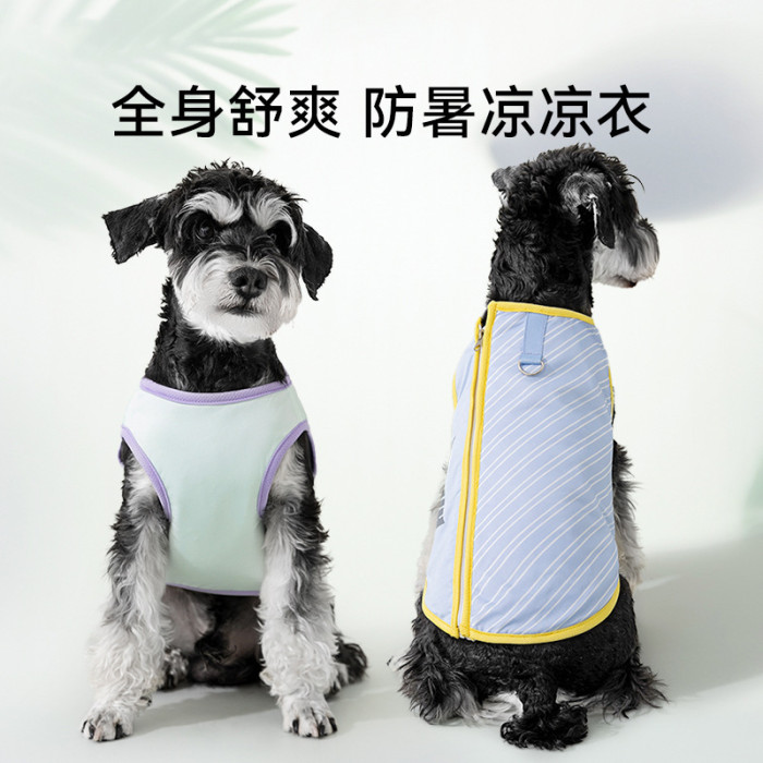 夏季狗狗簡約拉鍊撞色涼涼衣小型犬戶外降溫防暑防曬衣寵物狗衣服