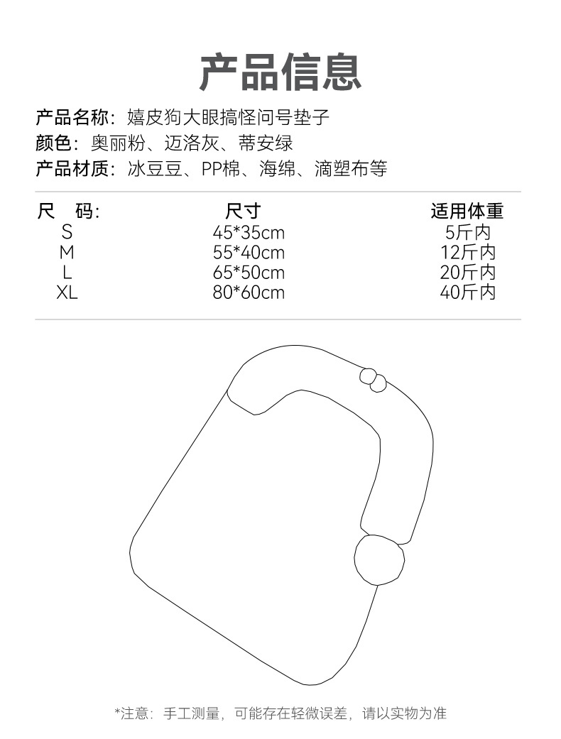 | 顔色 | XL:80*60cm(建議體重40斤內) |
