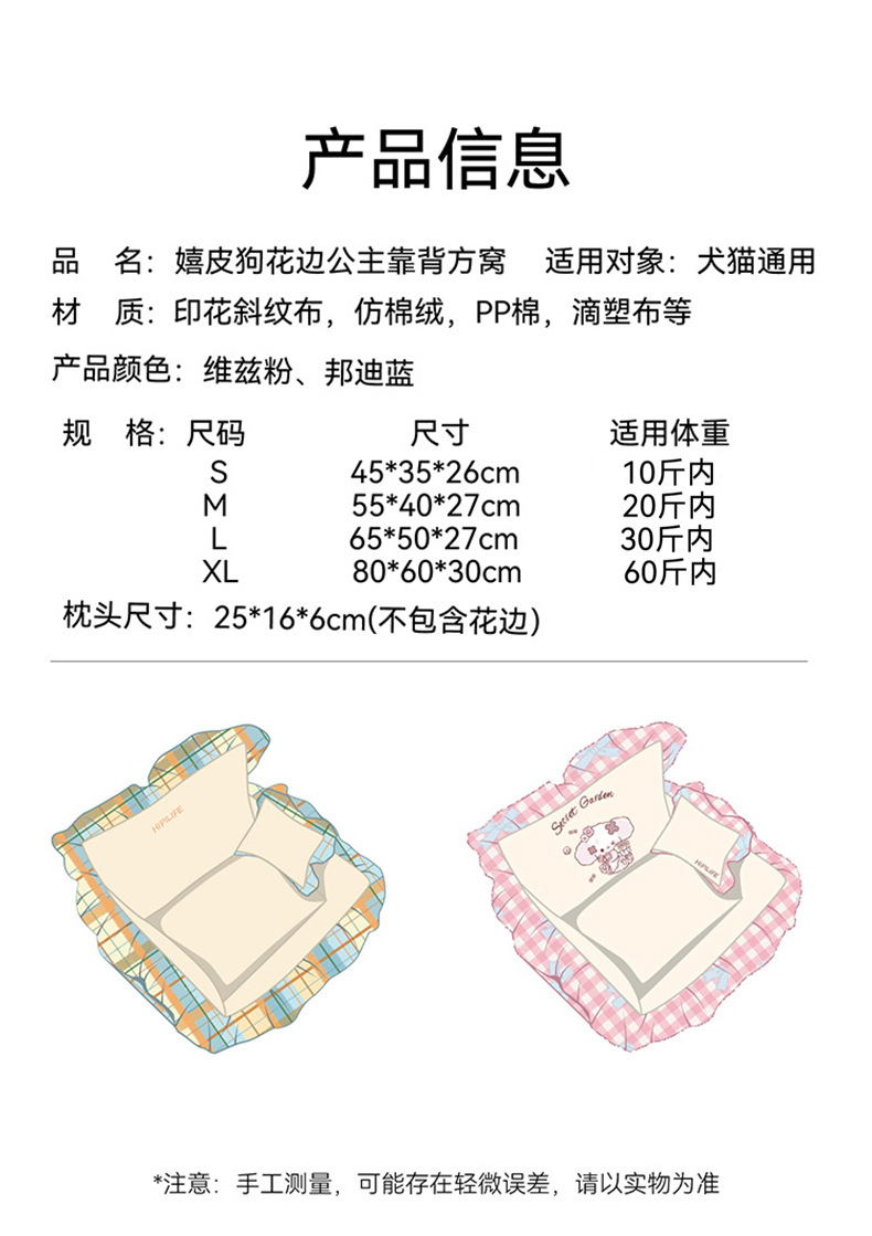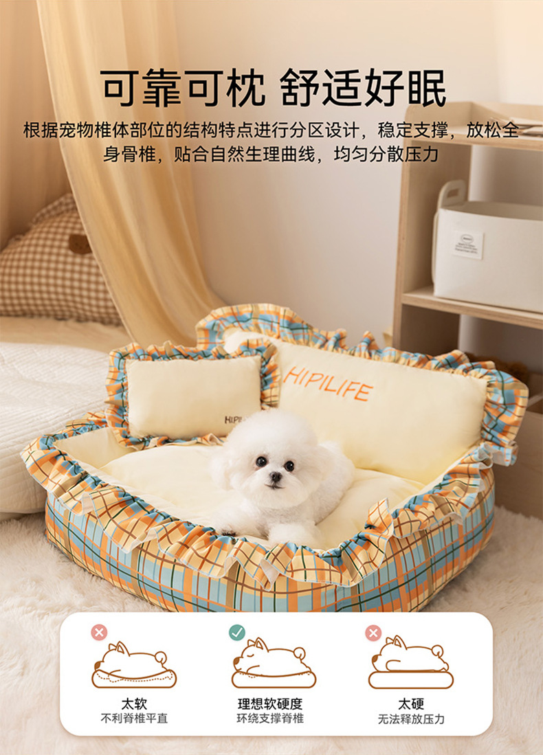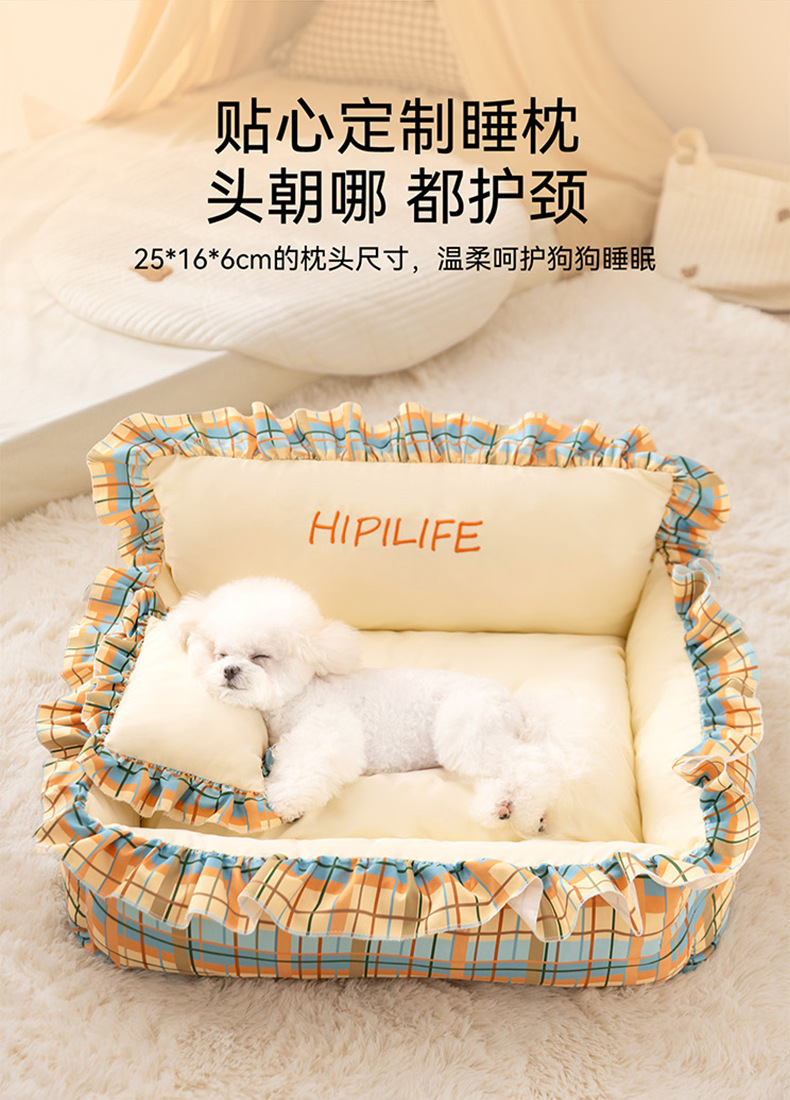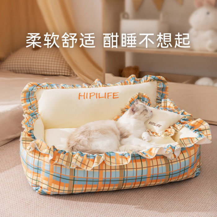 貓窩四季通用花邊公主靠背方窩全可拆洗狗狗睡覺狗窩寵物窩貓沙發