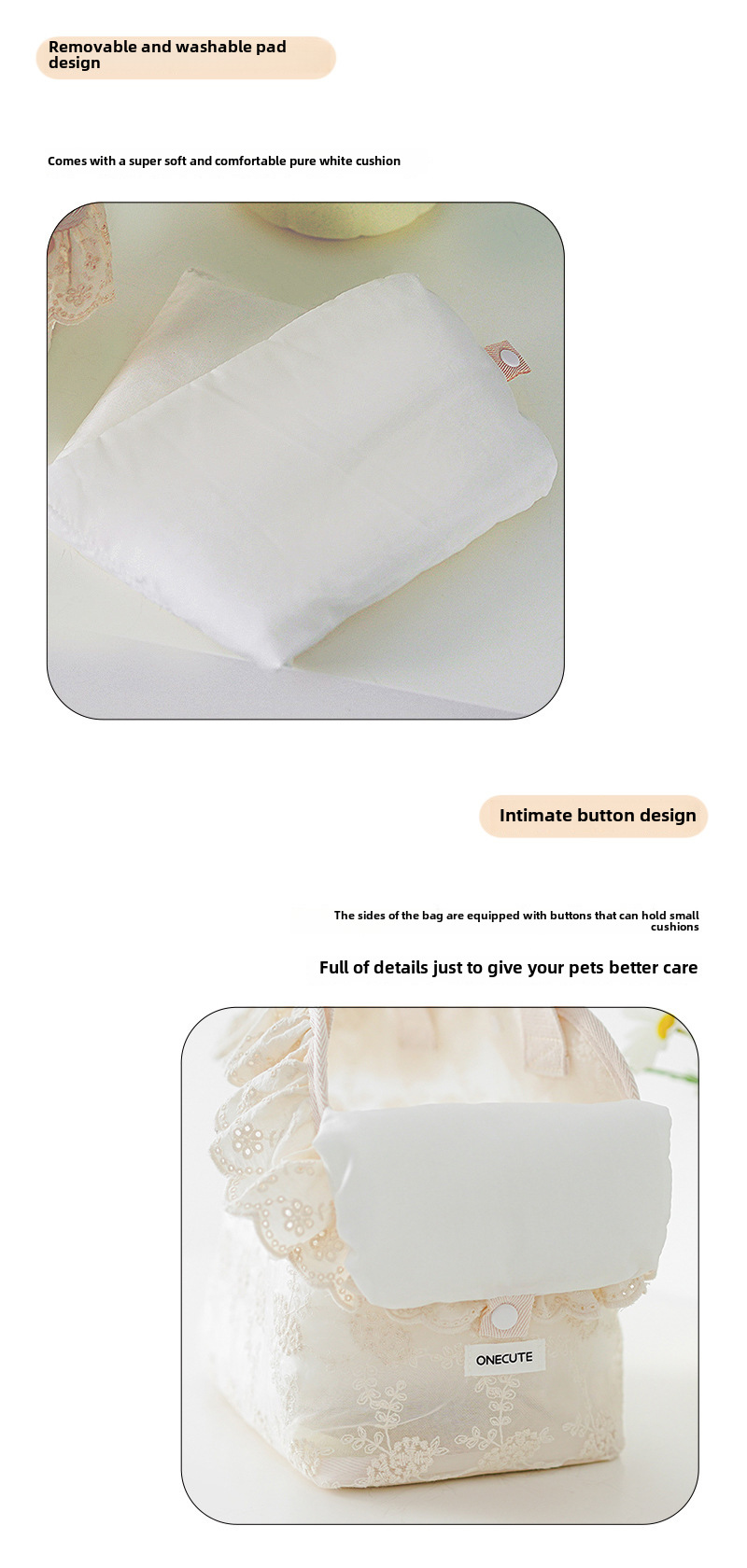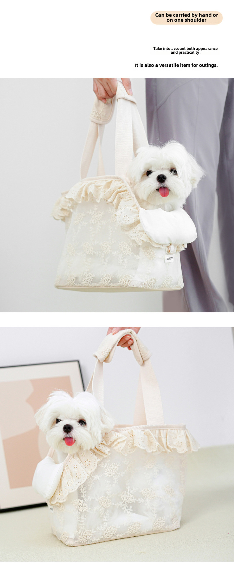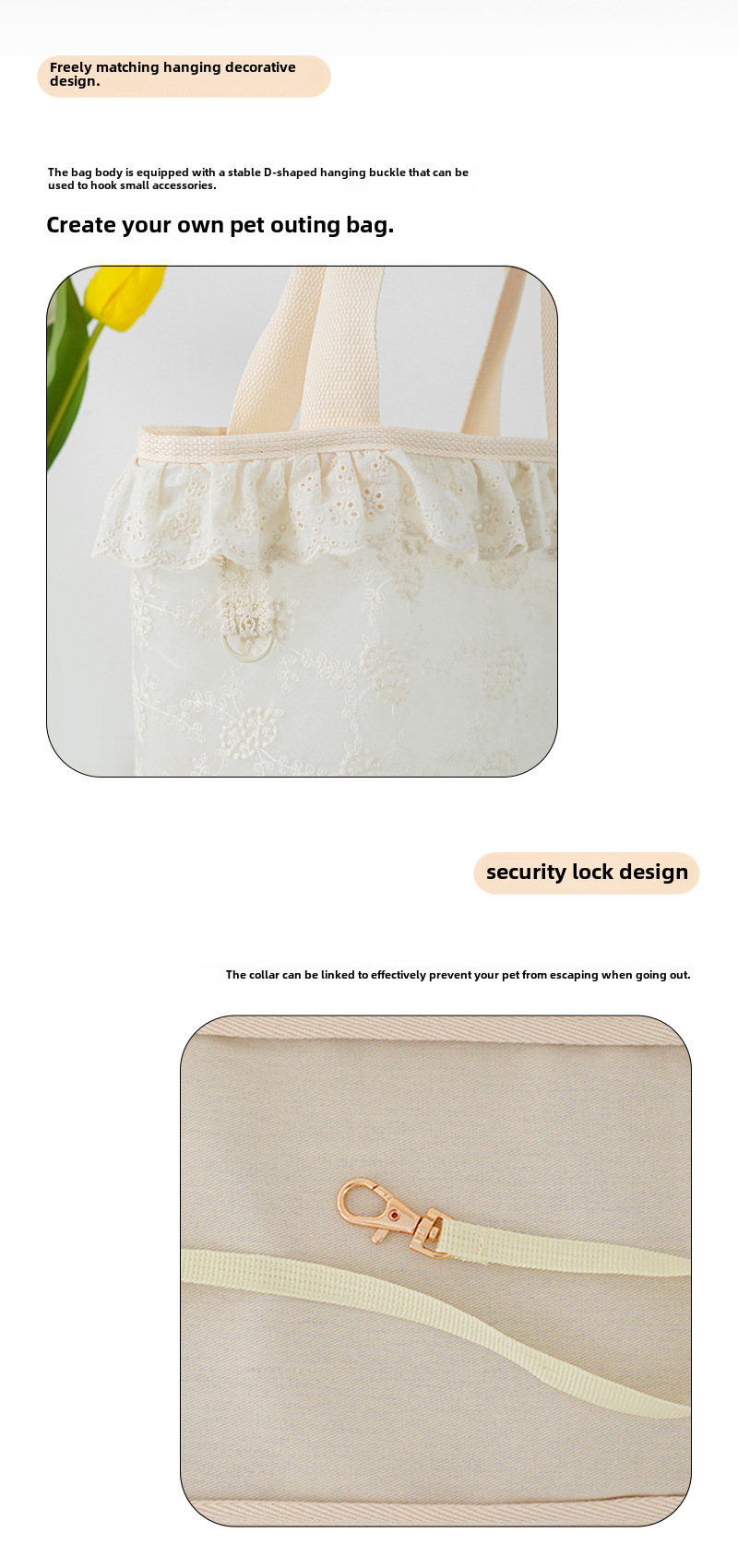 • Stylish Design:Featuring lace details, this carrier bag is not only functional but also adds a touch of elegance to your pet's outfit.