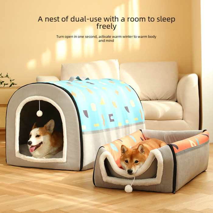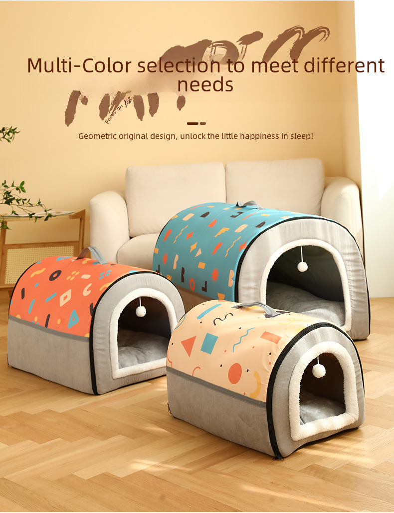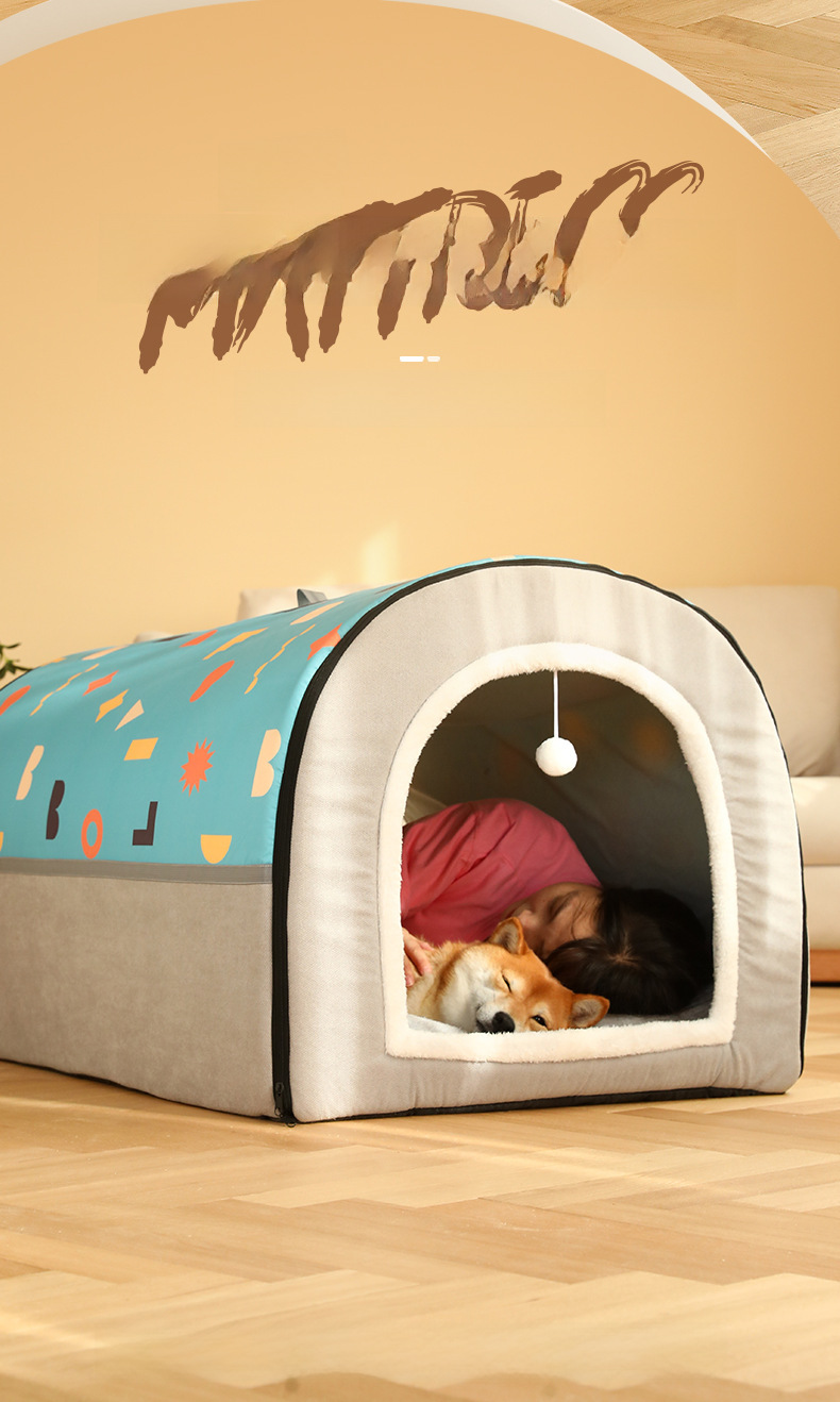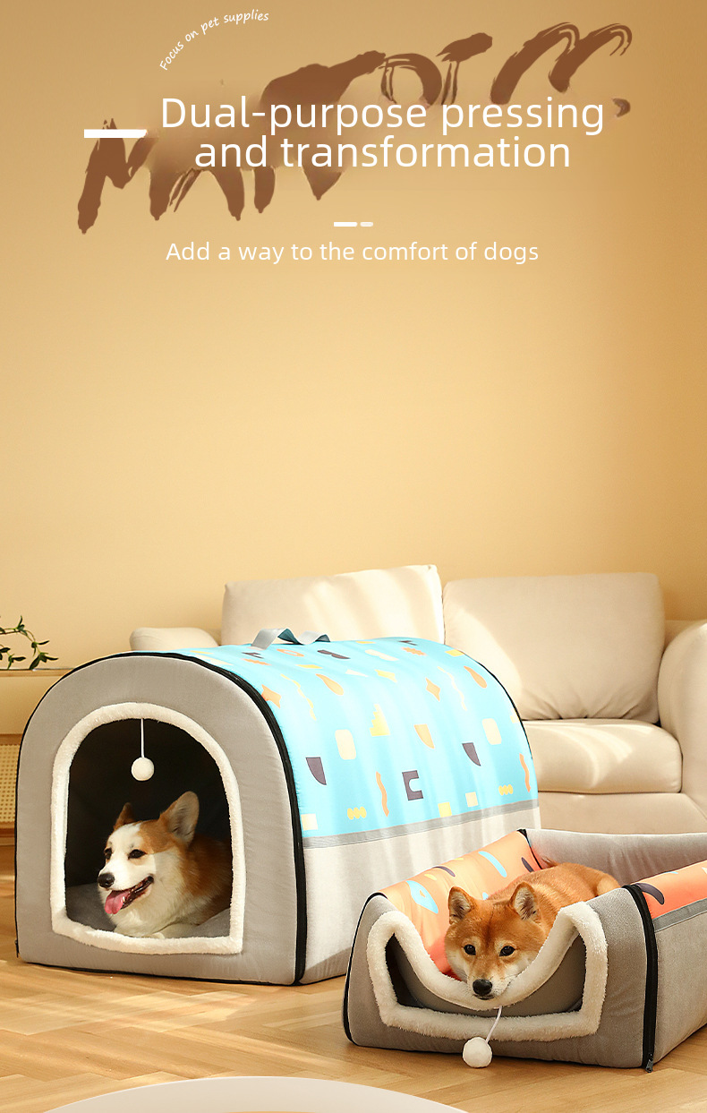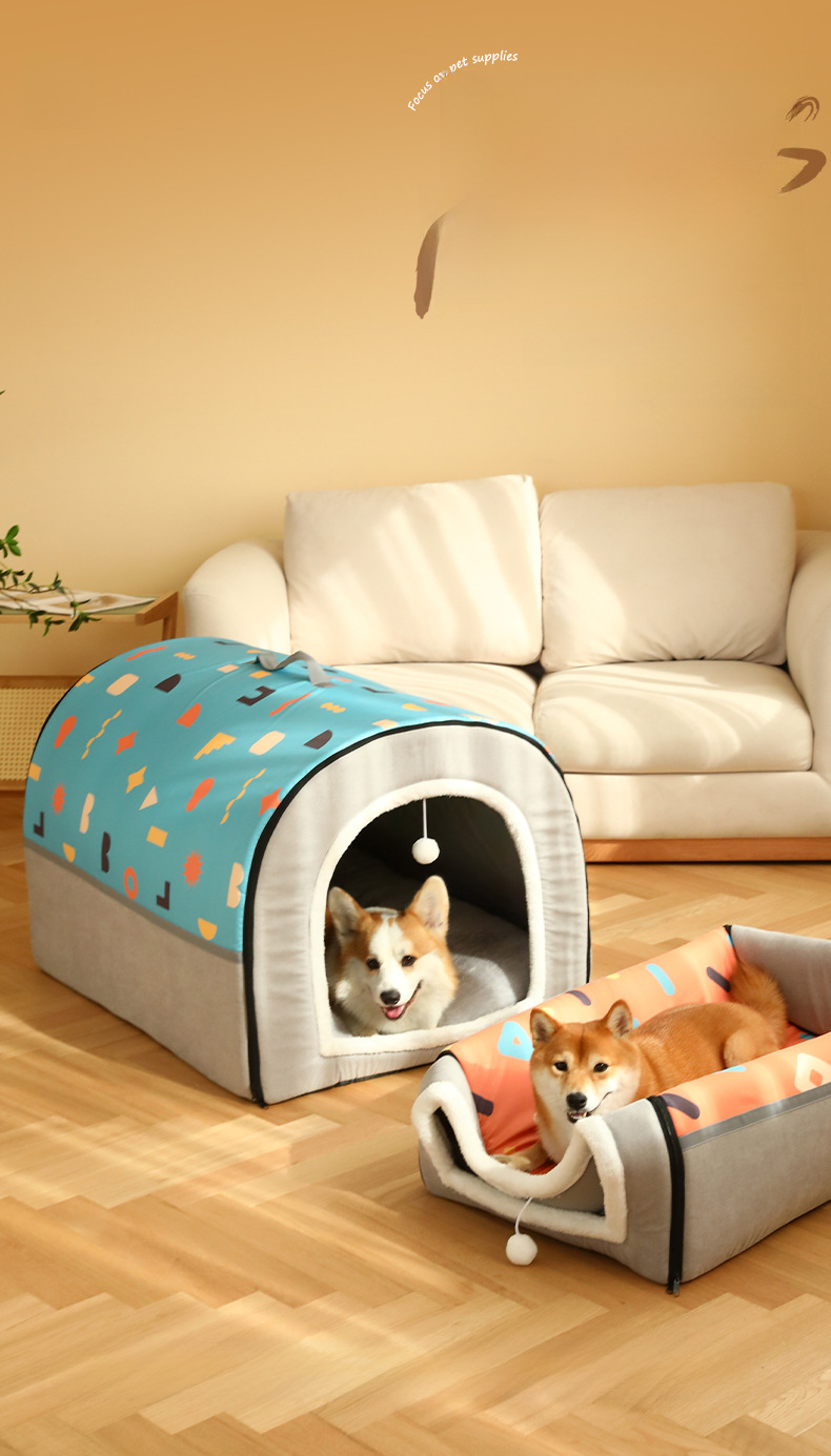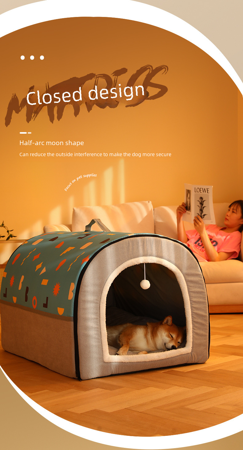 冬天狗窩保暖貓別墅狗狗半封閉房子窩四季寵物窩貓窩狗窩寵物用品