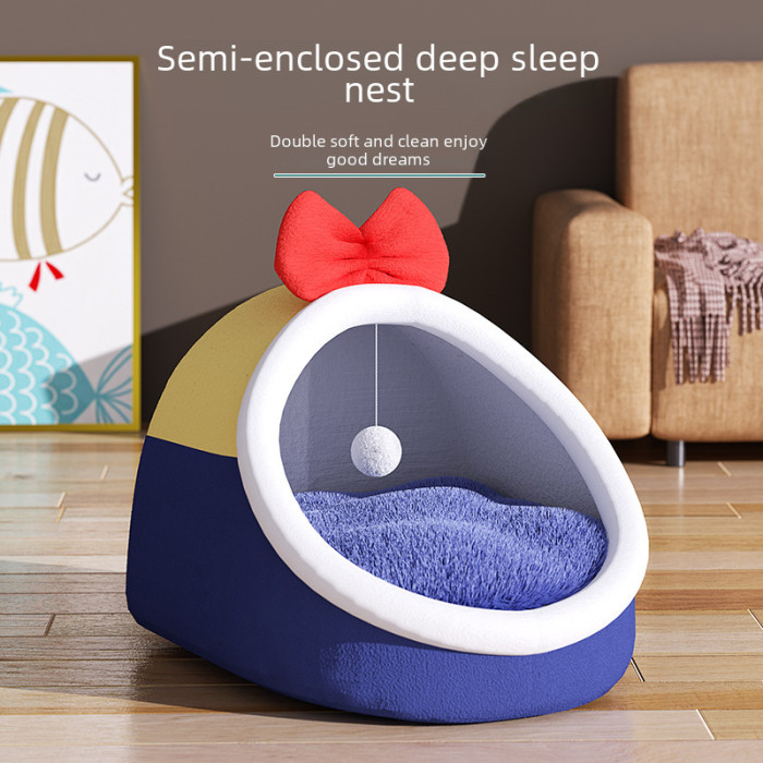 貓吉吉四季貓窩半封閉可拆洗貓窩寵物貓床半包圍狗窩狗床冬季保暖