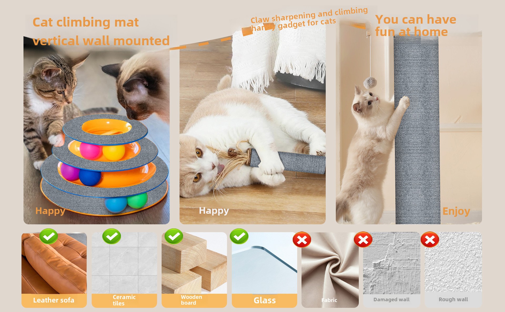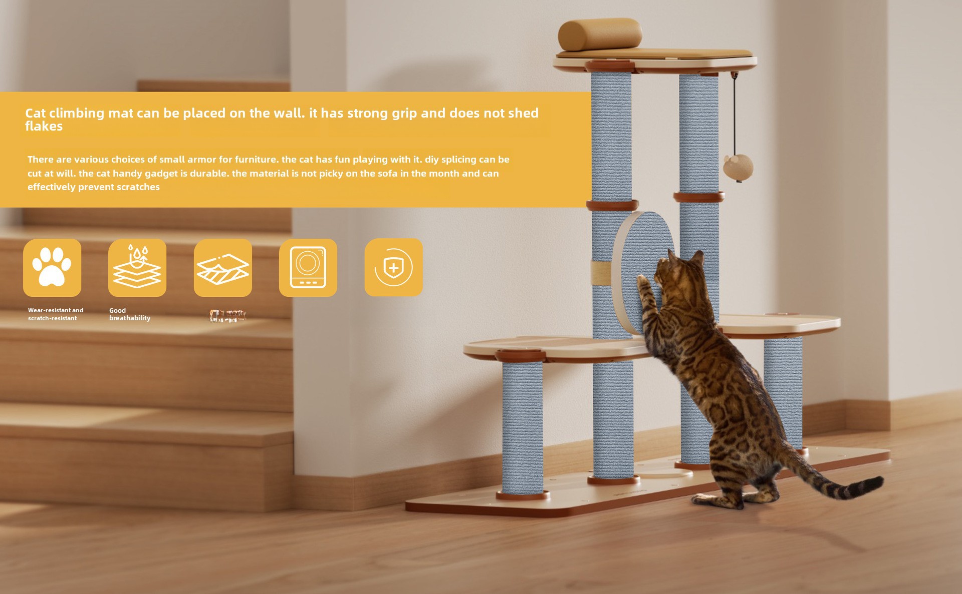 • Multi-functional Design:This cat scratching pad is a multi-functional tool, serving as a wall sticker, a scratching board, a dust-proof solution, and a wear-resistant product. It's perfect for cats who love to climb and scratch.