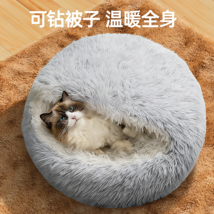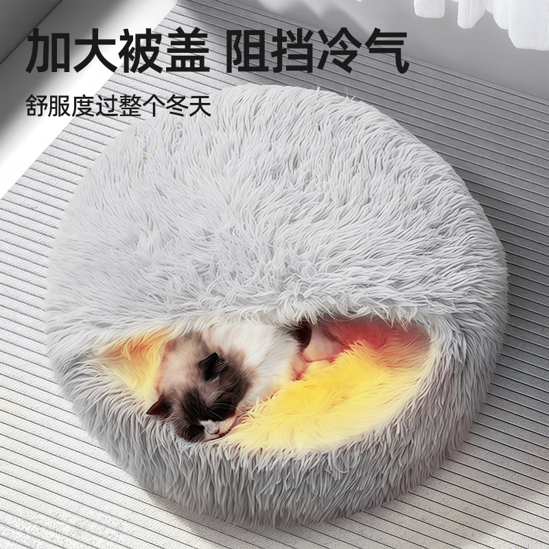 貓窩貝殼窩長毛絨半封閉寵物貓床睡袋狗窩狗床封閉式冬季保暖貓屋