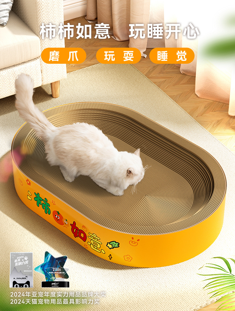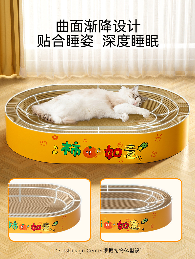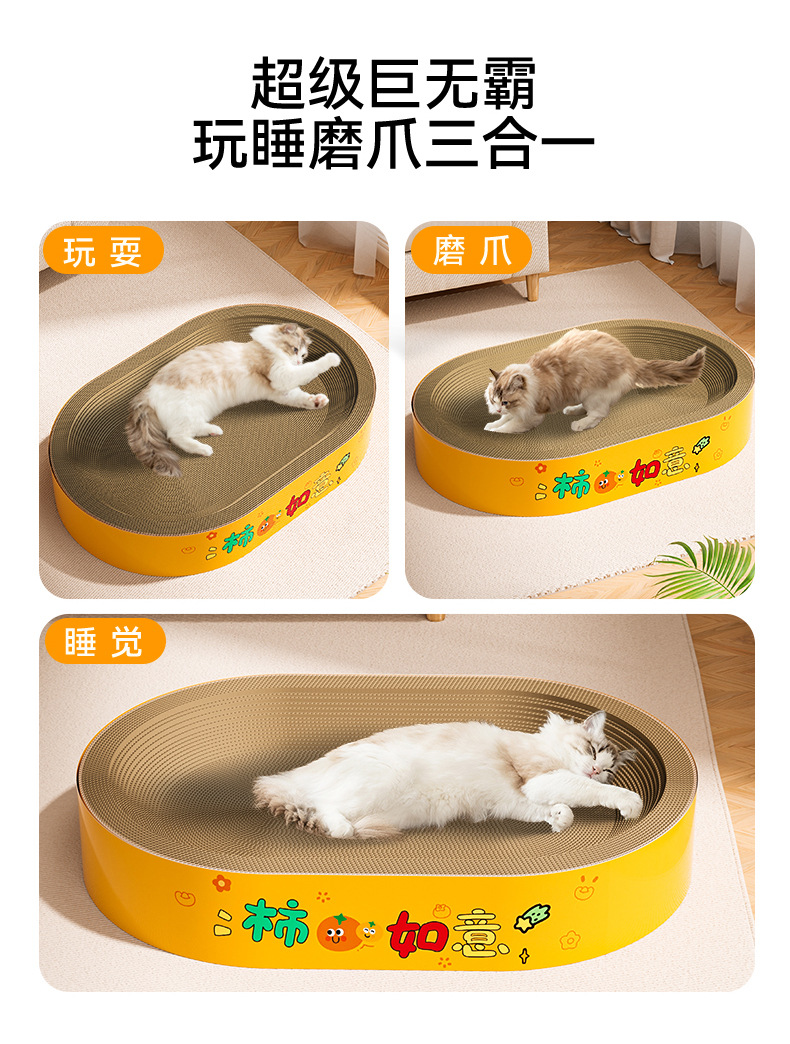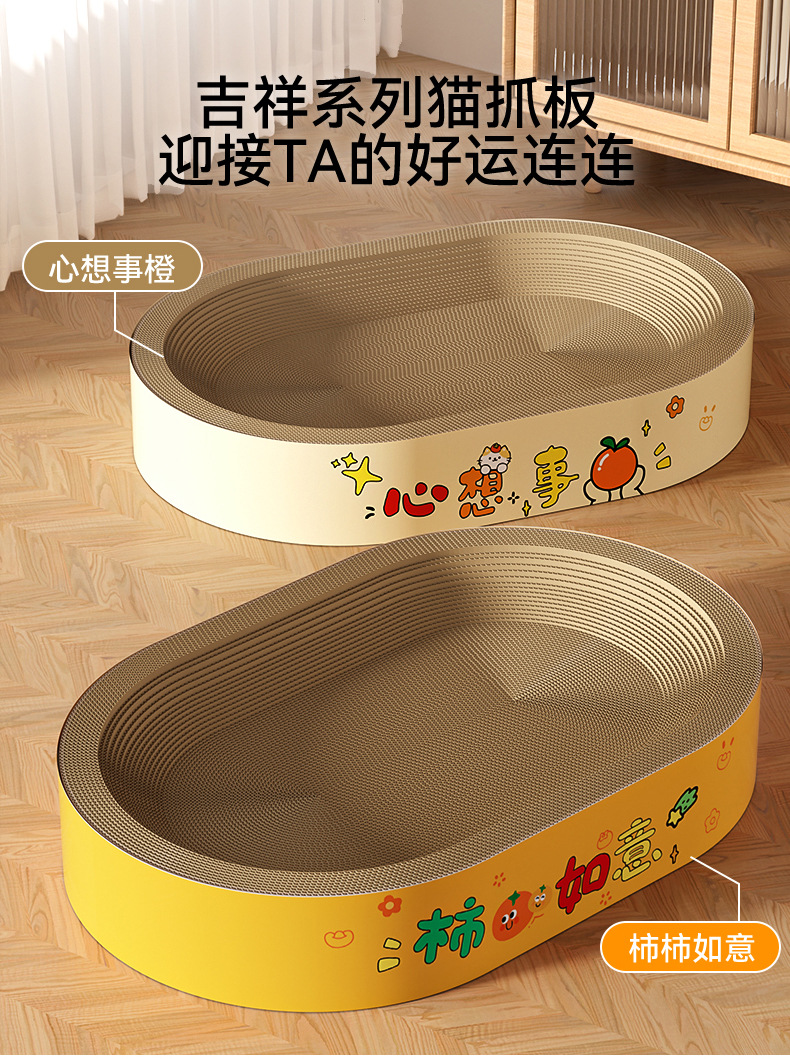 貓咪吉祥語橢圓超大號貓抓板瓦楞紙貓窩玩睡一體巨無霸寵物貓玩具