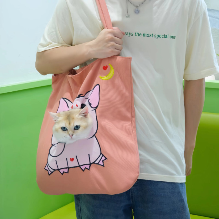寵物外出包單肩包斜後背包卡通輕便可攜式貓咪狗狗用品帆布藍貓泰迪比
