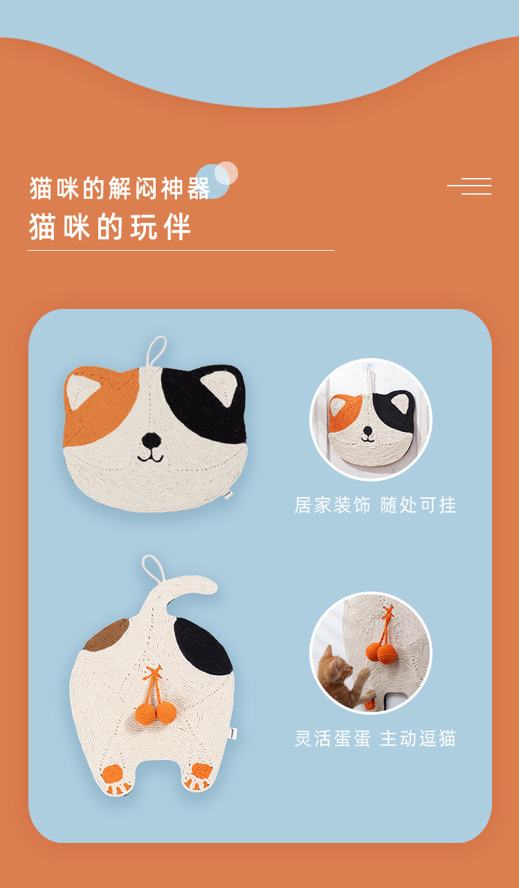 可愛貓蛋蛋耐磨貓抓板粗劍麻不屑貓窩可掛牆磨爪一體貓咪玩具