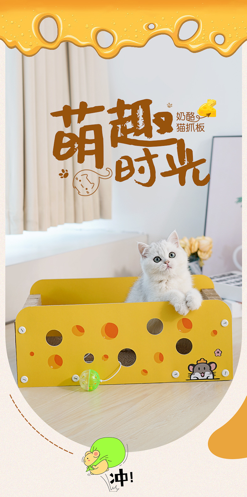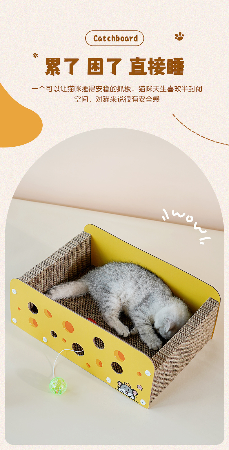 喵仙兒奶酪貓抓板萌趣卡通瓦楞紙貓咪抓板可替換瓦楞紙抓板貓窩