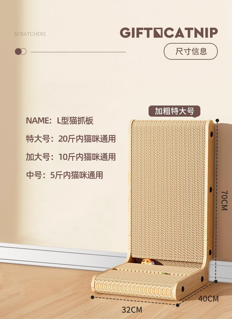 L型貓抓板耐抓耐磨不掉屑立式貓爪板貓窩一體瓦楞紙防貓抓貓玩具