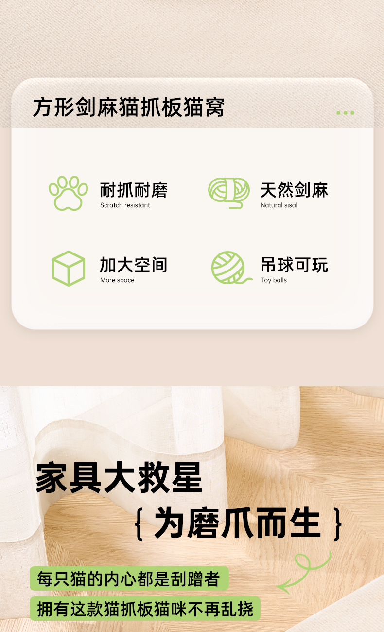 劍麻貓抓板耐磨貓窩一體耐抓不掉屑特大號貓爪板四季通用貓咪抓盆