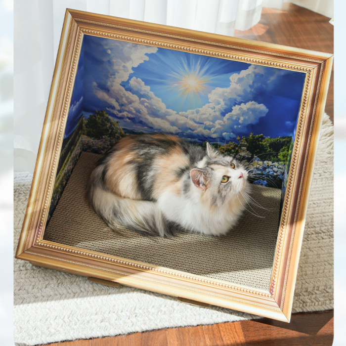 油畫貓窩貓抓板瓦楞紙貓窩二合一世界名畫寵物裝飾貓咪玩具