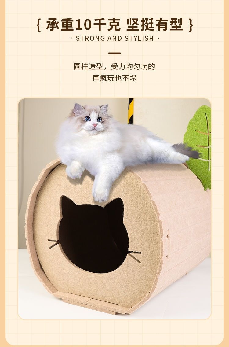 樹樁貓窩耐磨貓爪隧道寵物不沾毛立體多功能半封閉躲避可折曡